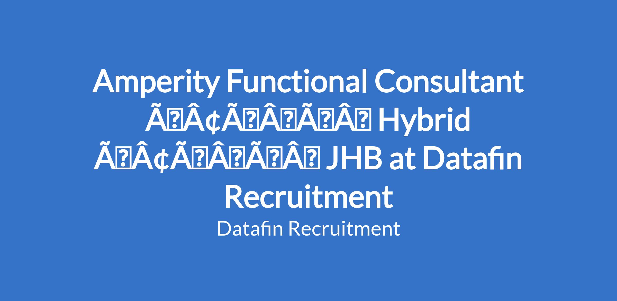 Amperity Functional Consultant âÃÂàHybrid âÃÂàJHB at Datafin Recruitment