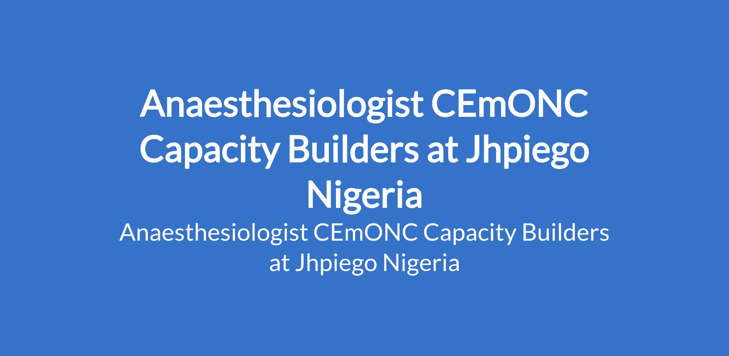 Jhpiego Nigeria is recruiting to fill the position of: Anaesthesiologist CEmONC Capacity Builder. The position is located in Abuja and Abakaliki - Ebonyi State. Interested candidate must be a Registered and practicing anaesthesiologist with at least 5 years post-qualification working experience.