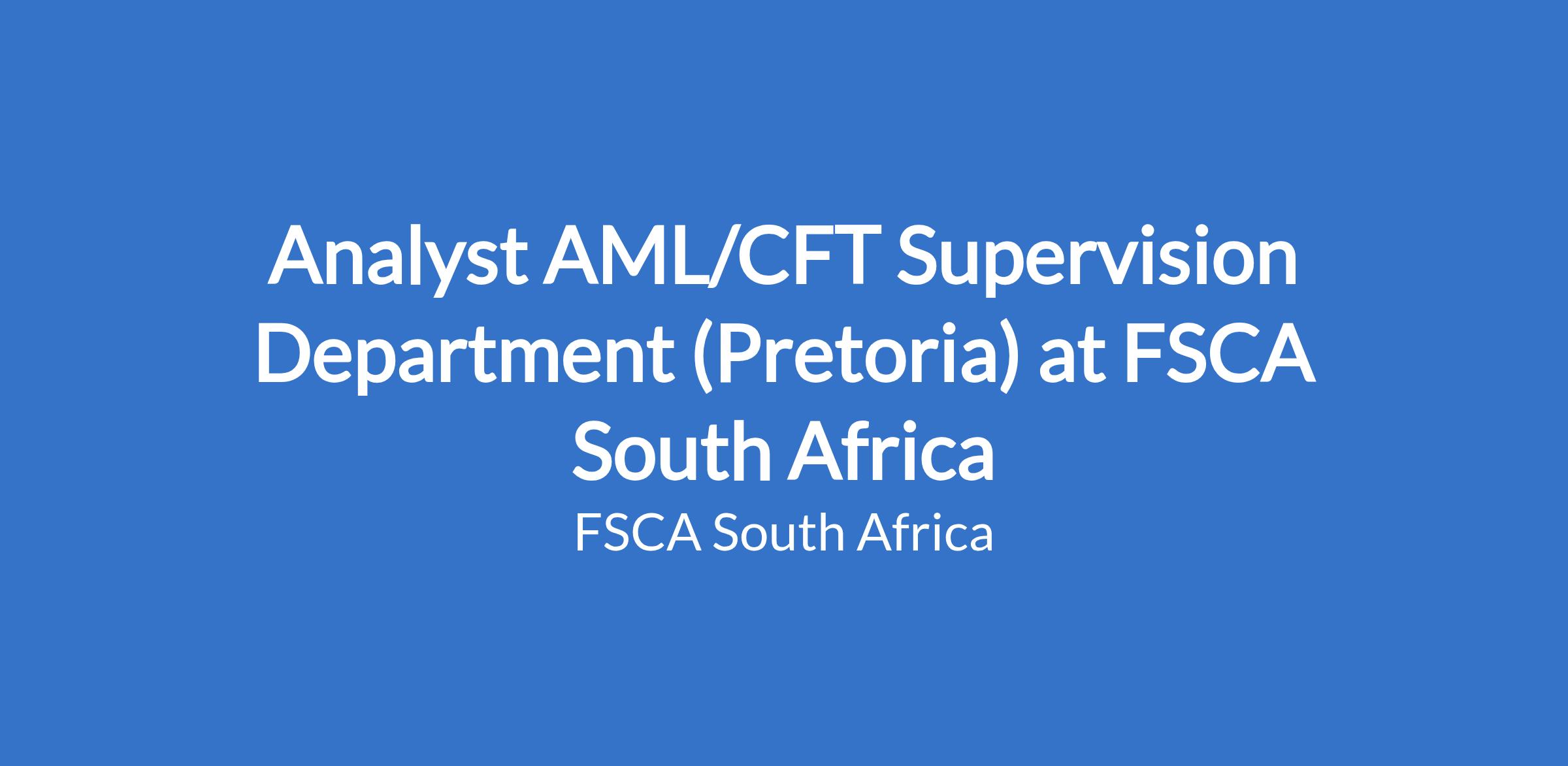 Analyst AML/CFT Supervision Department (Pretoria) at FSCA South Africa