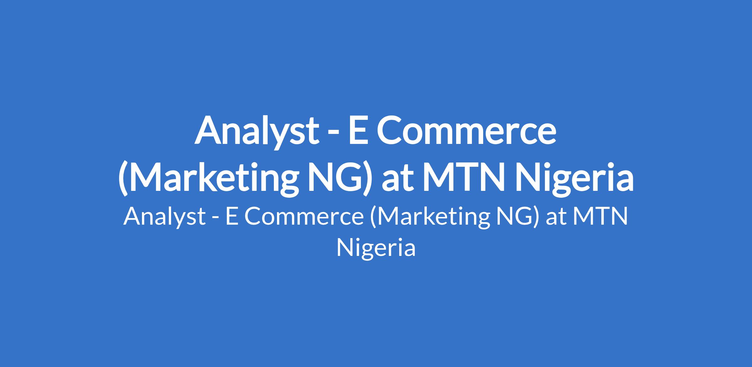 MTN Nigeria is recruiting to fill the position of: Analyst - E Commerce (Marketing NG). The position is located in Ikoyi, Lagos State. Interested candidates should possess a Bachelors Degree in Marketing, Business Administration, Economics, Statistics, Data Analytics, or Computer Science with 37 years experience in an area of specialization, with experience working with others.