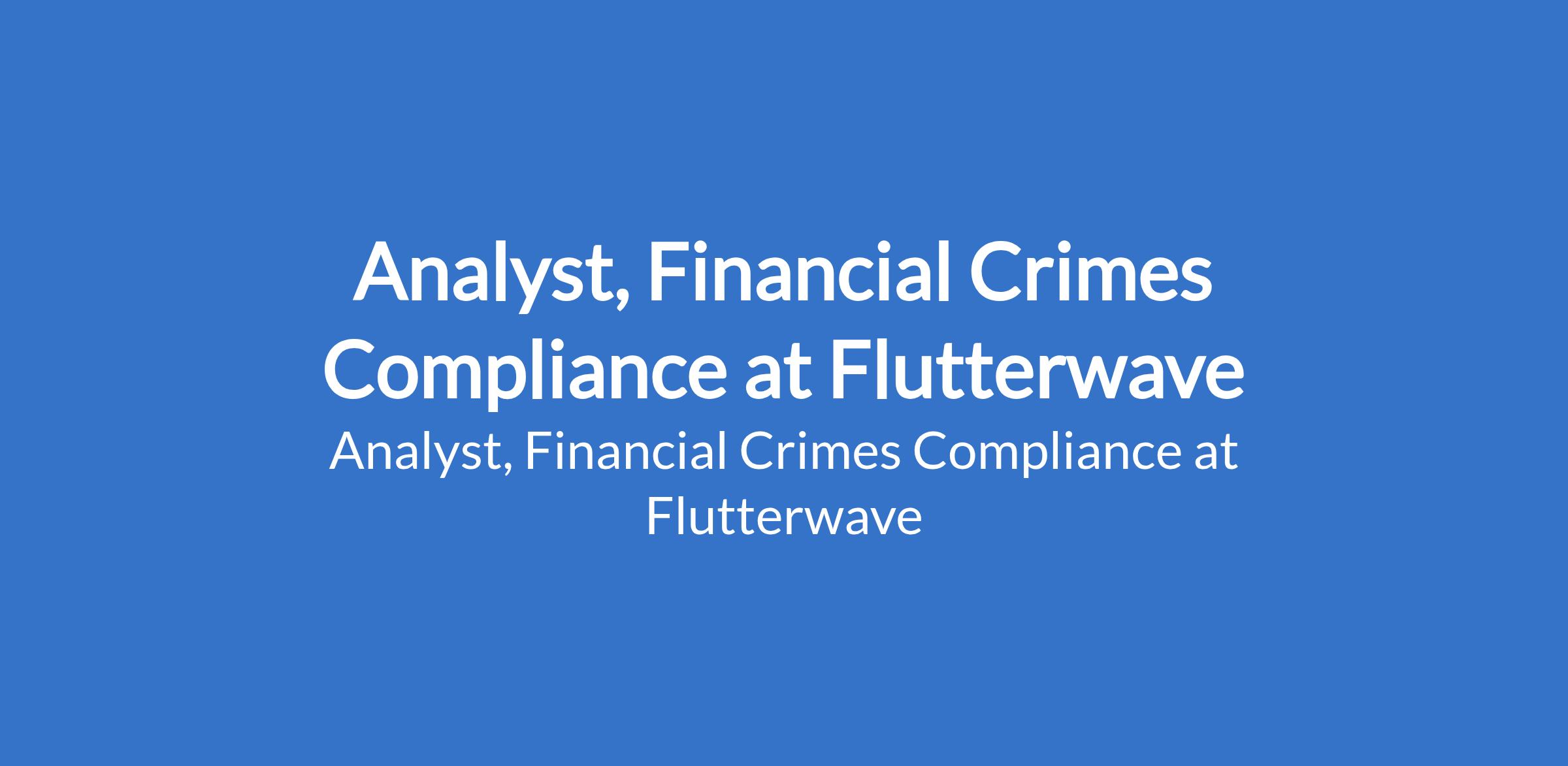 Flutterwave is recruiting to fill the position of: Analyst, Financial Crimes Compliance. The position is located in Lekki, Lagos State. Interested candidates should possess a Bachelor's Degree in Financial Management or Investment Management, Business Management, Commerce, Commerce in Business Innovation and Entrepreneurship, or a related field; Advanced degree preferred with 1- 2 years of experience in a similar role, preferably in the payment industry. Specific experience with conducting EDD preferably.