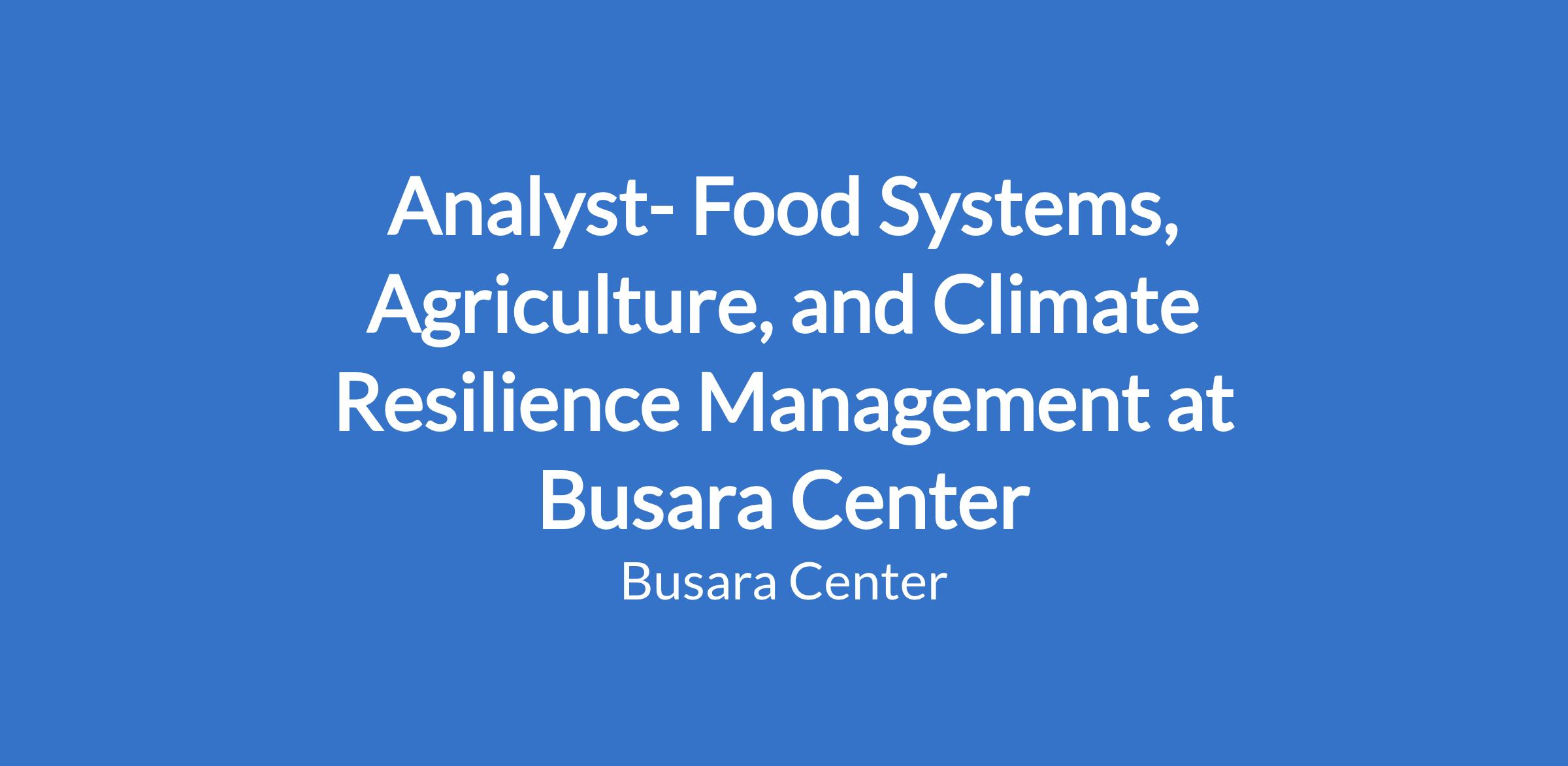 Analyst- Food Systems, Agriculture, and Climate Resilience Management at Busara Center