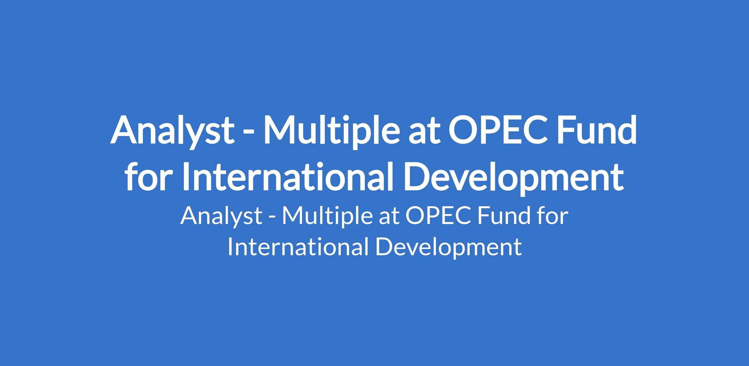 The OPEC Fund for International Development is recruiting to fill the position of: Analyst - Multiple. The position is located in Austria. Interested candidates should possess a Bachelor's Degree in Economics, Political Science, Finance, Management or a (closly) relevant field with a minimum of three (3) years of relevant professional experience in a related field, of which at least one (1) should have been at an international development finance institution.
