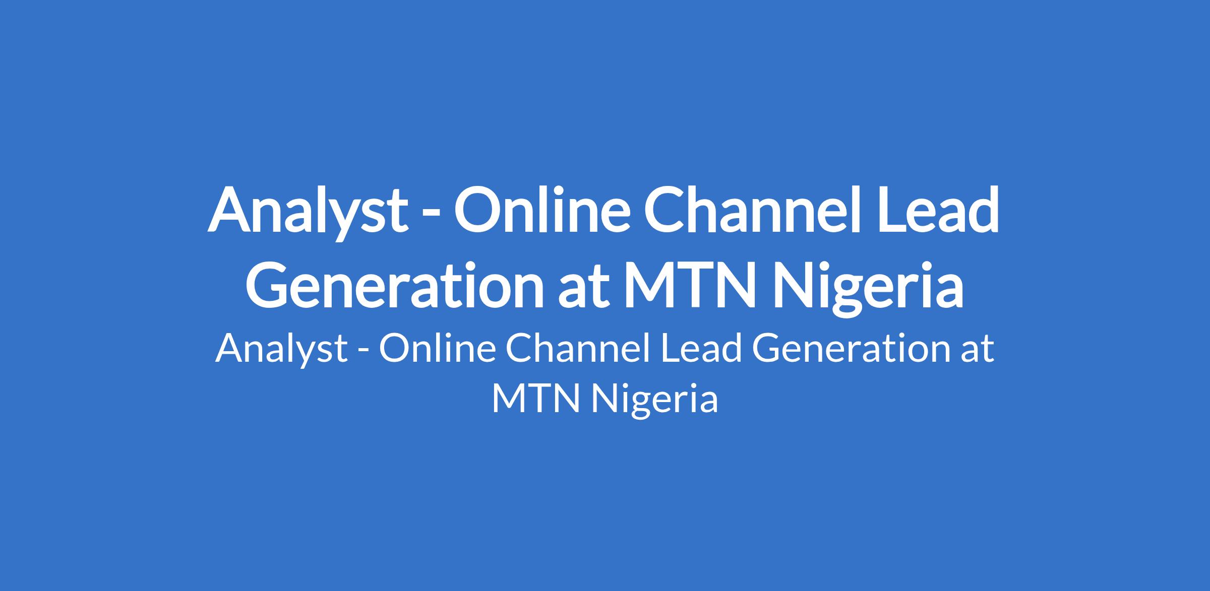 MTN Nigeria is recruiting to fill the position of: Analyst - Online Channel Lead Generation. The position is located in Ikoyi, Lagos State. Interested candidates should possess a First Degree in Business, Marketing and Advertising with 3 - 7 years experience in an area of specialization.