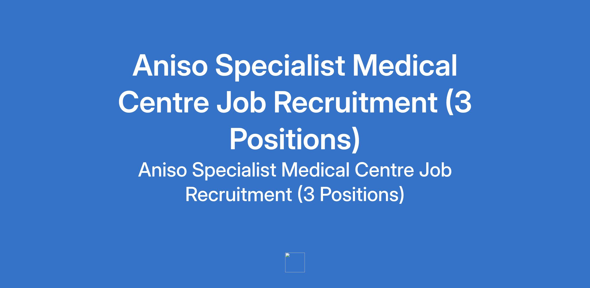 Aniso Specialist Medical Centre Job Recruitment (3 Positions)