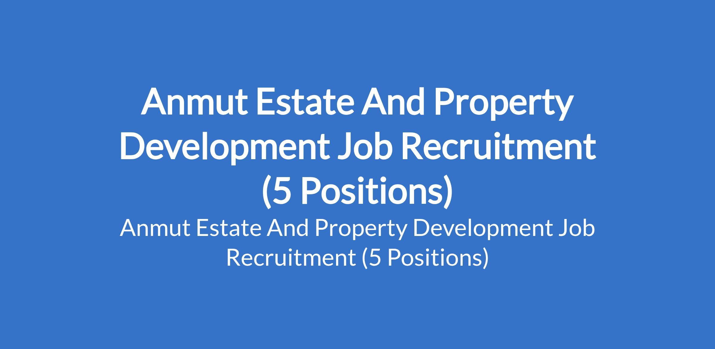 Anmut Estate And Property Development Job Recruitment (5 Positions)
