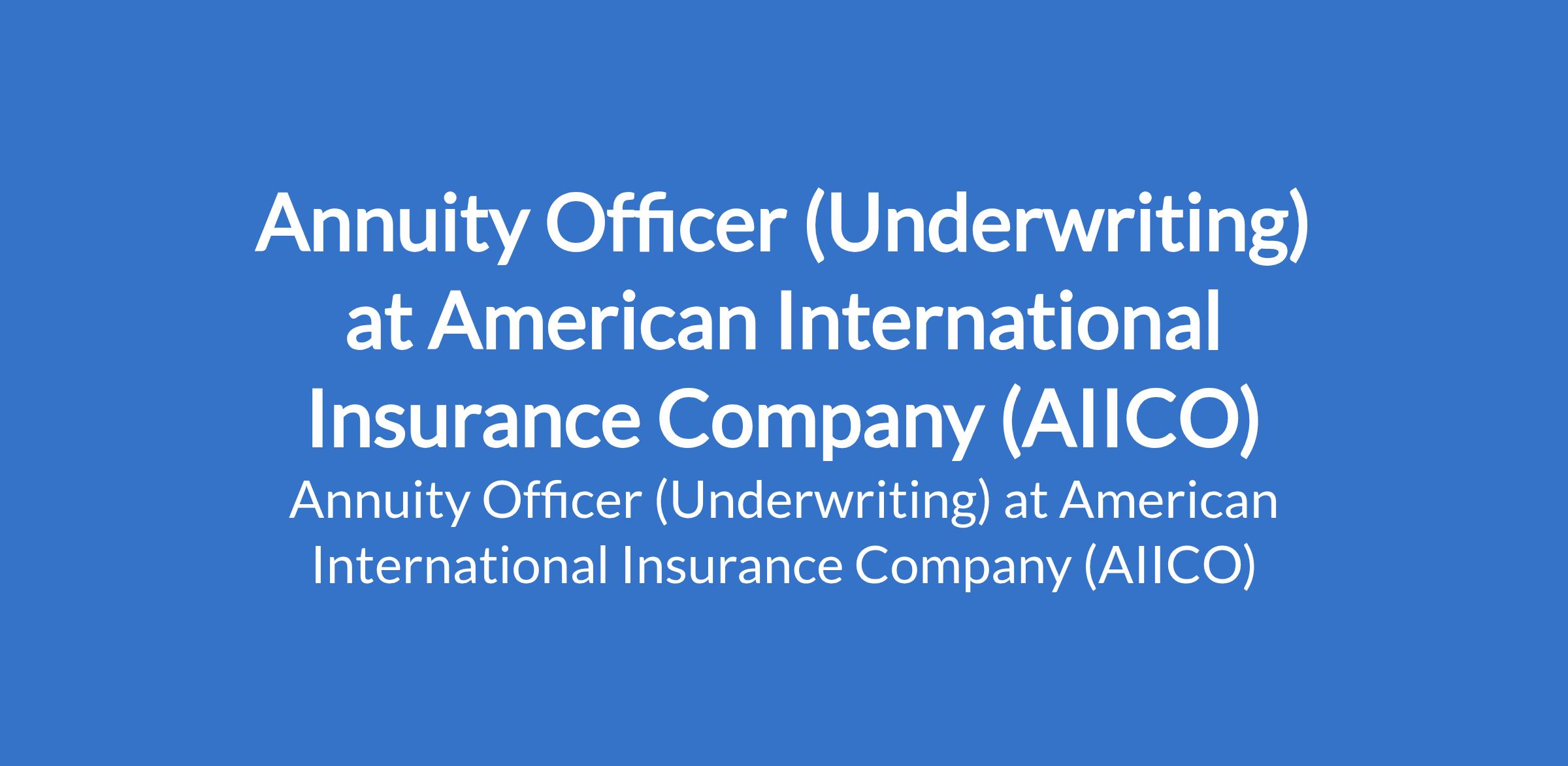 American International Insurance Company (AIICO) is recruiting to fill the position of: Annuity Officer (Underwriting). The position is located in Lagos State. Interested candidates should possess an HND/B.Sc. in Insurance, Business Administration, Finance, or any related discipline with minimum of 2 years experience in a related role; CIIN will be an added advantage.