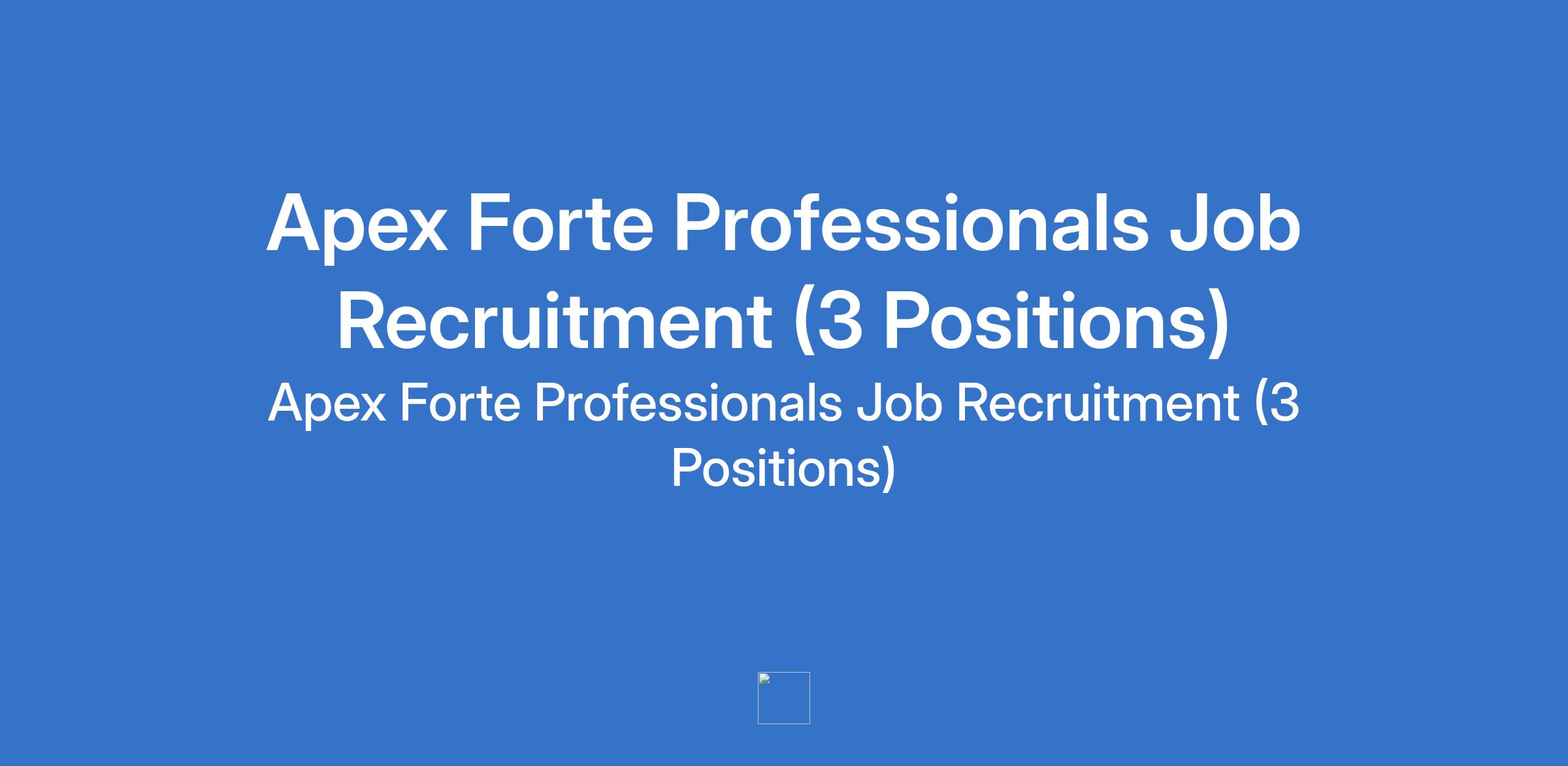 Apex Forte Professionals Job Recruitment (3 Positions)