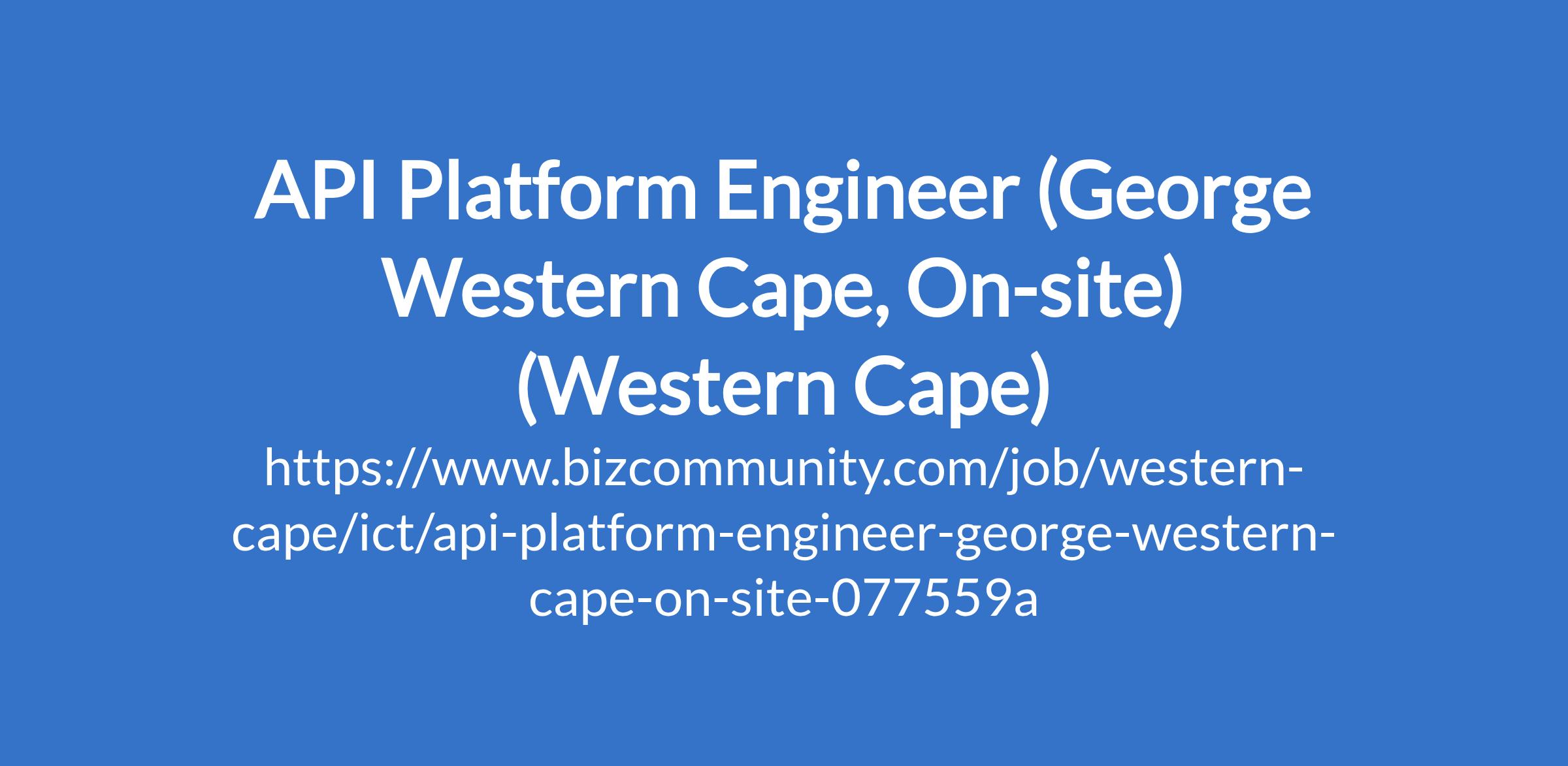 API Platform Engineer (George Western Cape, On-site) (Western Cape)