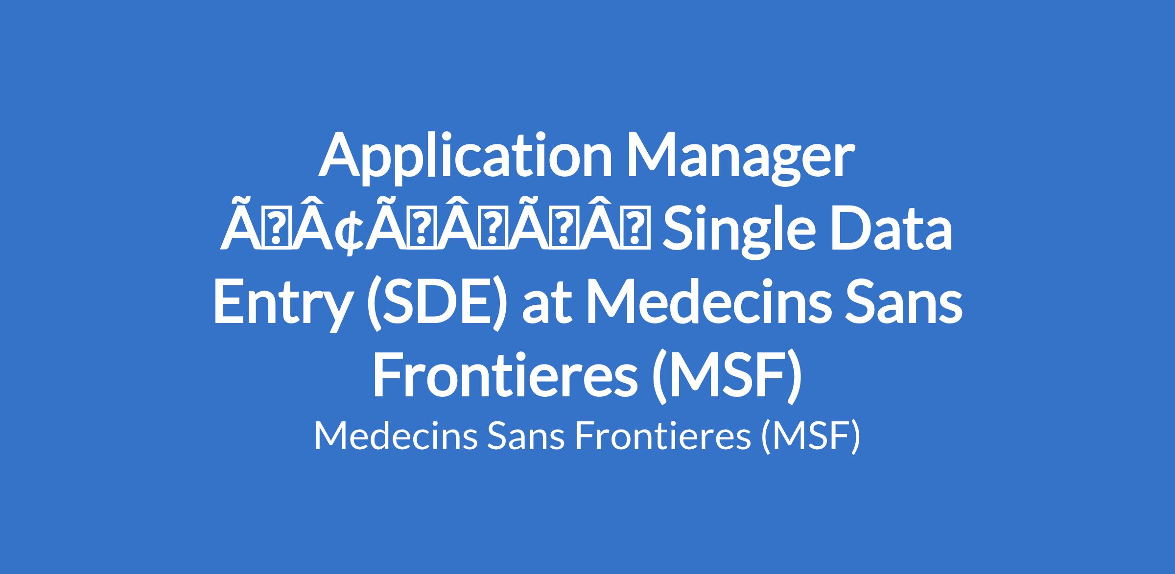 The Application Manager- Single Data Entry (SDE) Project is responsible for leading the testing, deployment, technical support, and evolution of a stock management application across MSF-EA, ensuring its operational readiness and sustainability in low-connectivity warehouse and pharmacy contexts, in collaboration with technical teams.
