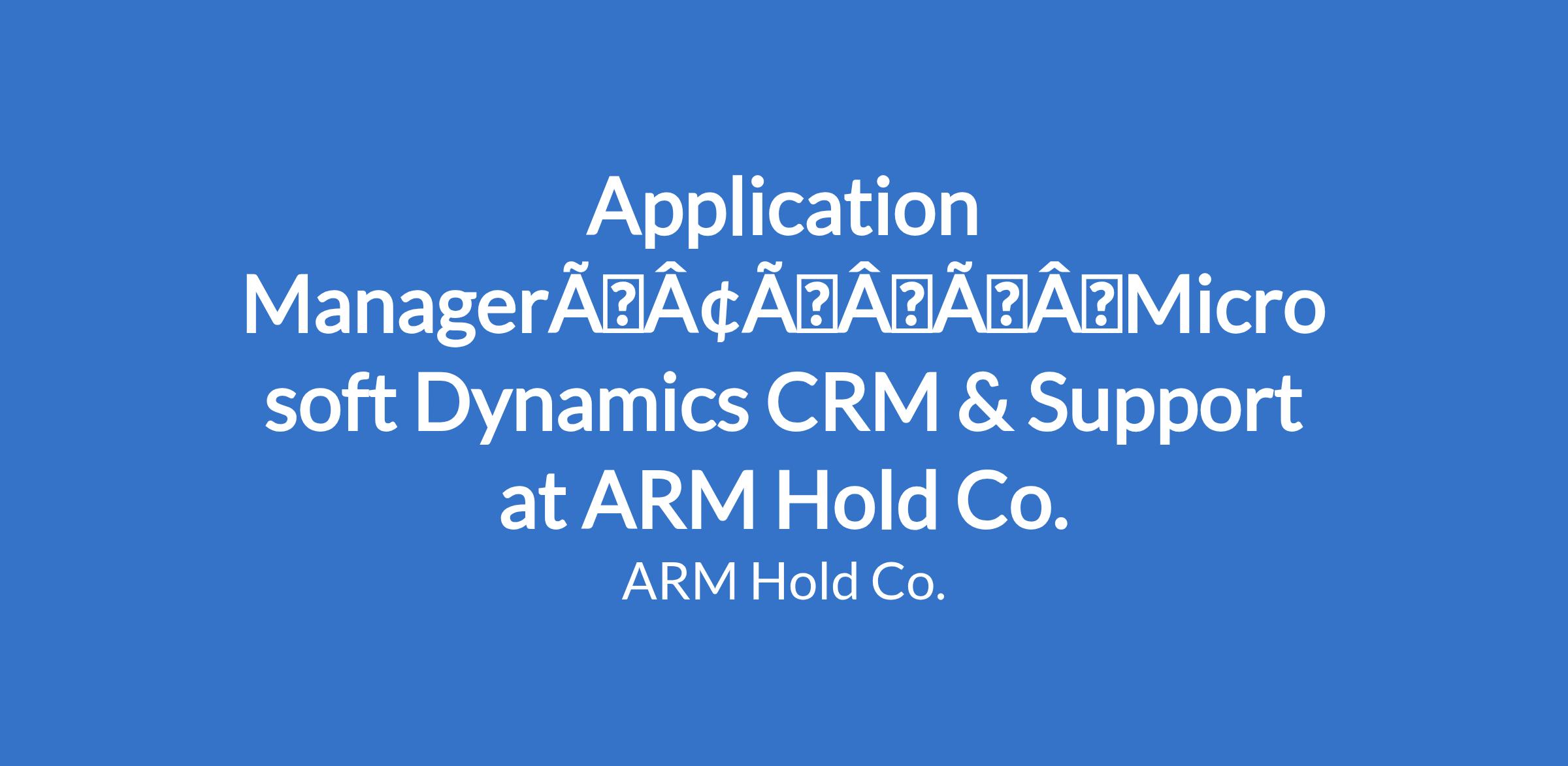 Application ManagerâÃÂÃÂMicrosoft Dynamics CRM & Support at ARM Hold Co.