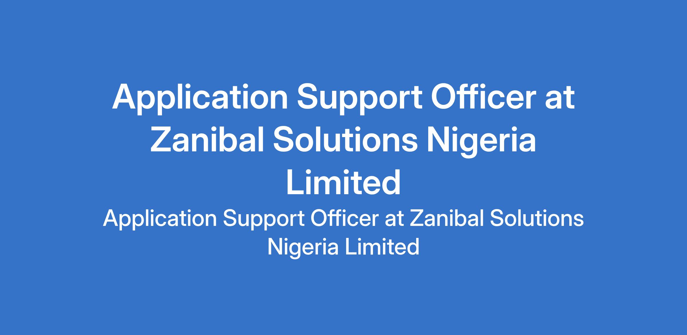 Zanibal Solutions Nigeria Limited is recruiting to fill the position of: Application Support Officer. The position is located in Ajah, Lagos State. Salary: N220,000 - N300,000 per month. Interested candidates should possess a Bachelors Degree with at least second class upper in computer science, banking & finance, accounting, or other related courses.
