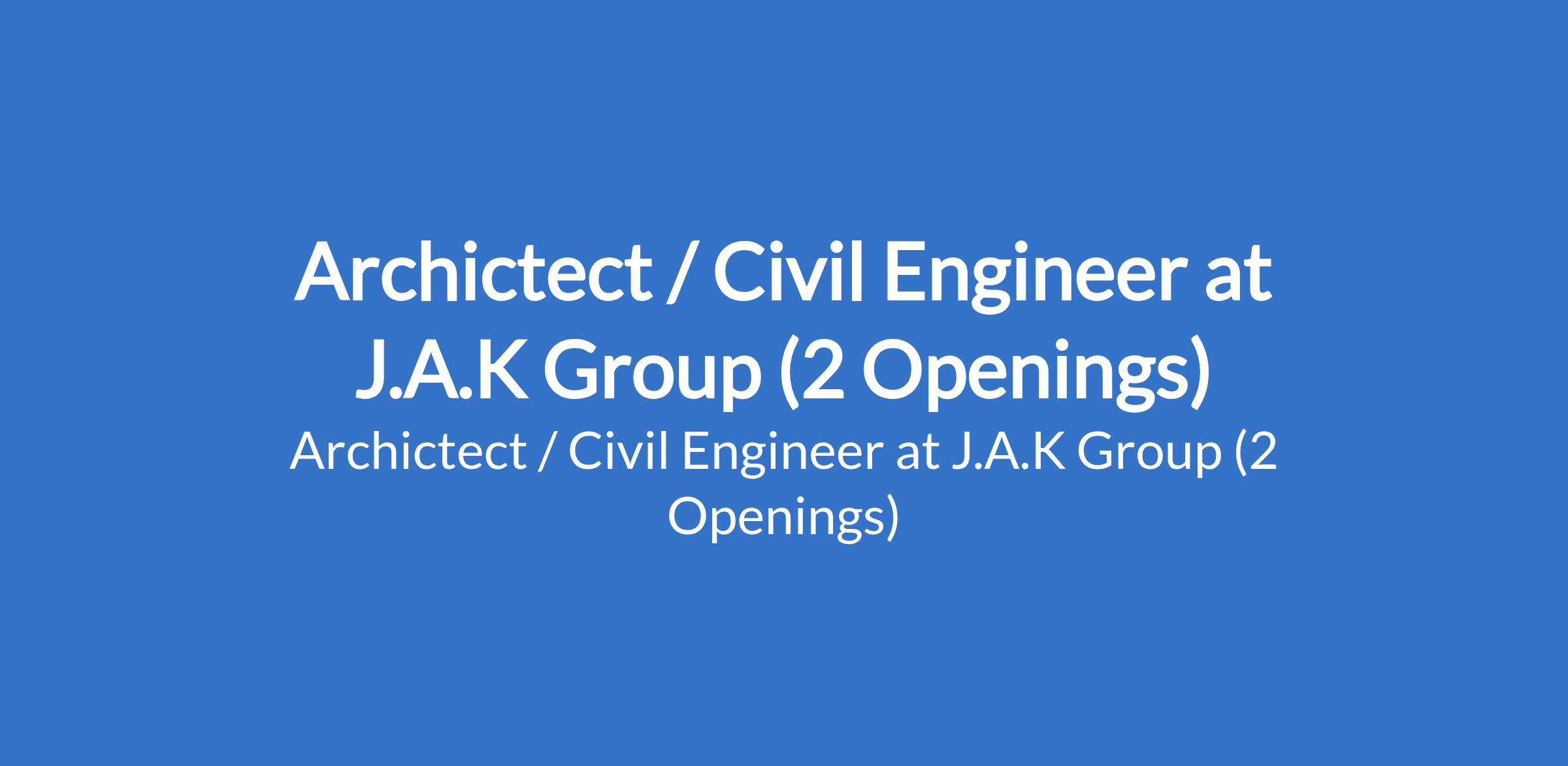 J.A.K Group is recruiting to fill the position of: Archictect / Civil Engineer. The position is located in Abuja (FCT) and Jigawa State. Interested candidates should possess a Bachelors Degree in Civil Engineering or related field with 5-10 years experience in civil construction projects and must possess relevant professional certification (e.g., COREN).