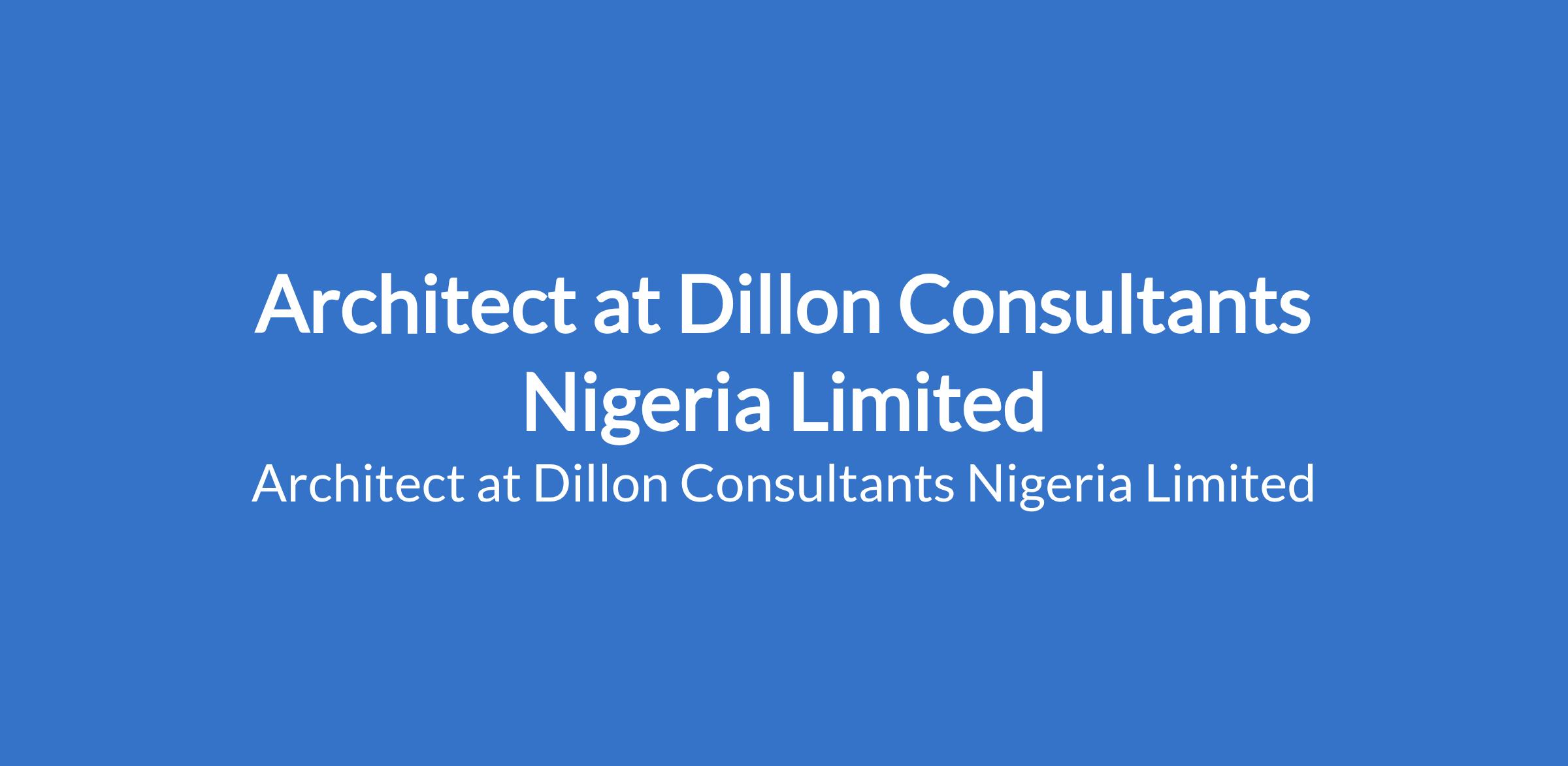 Dillon Consultants Nigeria Limited is recruiting to fill the position of Architect. Interested candidates should possess relevant qualifications with experience.