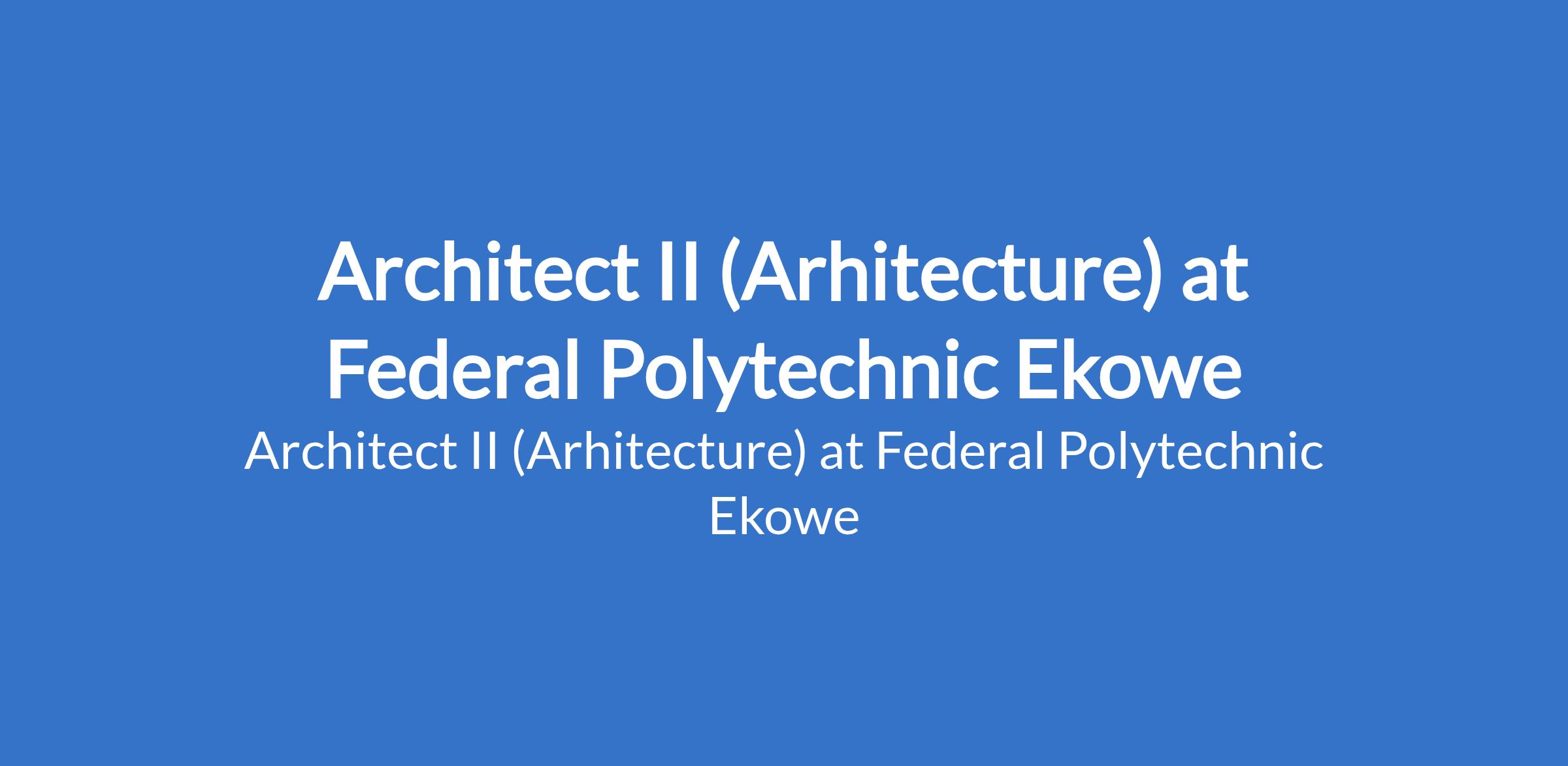 The Federal Polytechnic Ekowe invites applications from suitably qualified candidates for the position of: Architect II (Arhitecture). The position is located in Bayelsa State. Interested candidates should possess a Master's Degree in Architecture obtained from a recognized institution and should be registered with the Architectural Registration Council of Nigeria (ARCON).