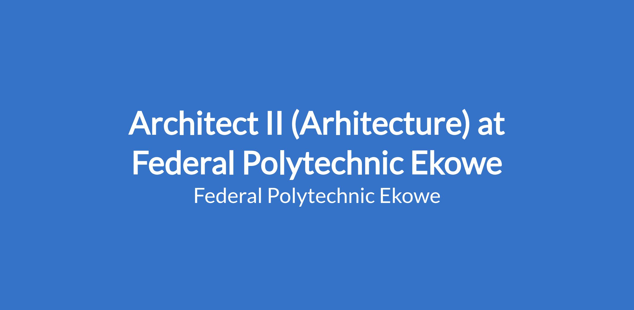 Architect II (Arhitecture) at Federal Polytechnic Ekowe