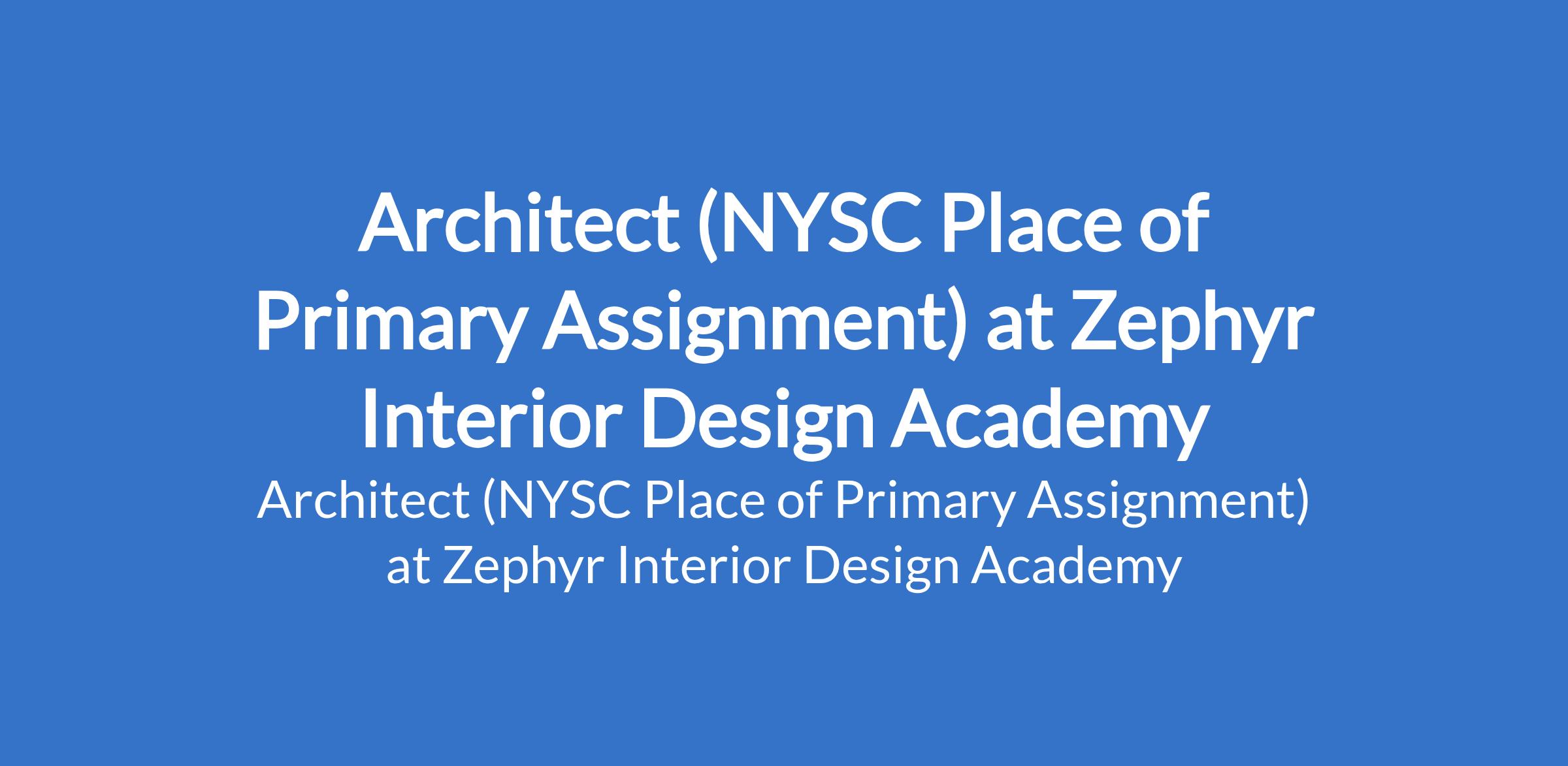 Zephyr Interior Design Academy (ZIDA) is recruiting to fill the position of: Architect (NYSC Place of Primary Assignment). The position is located in Abuja (FCT). Interested candidates should possess a Bachelors Degree in Architecture (recent graduate) and must be a prospective or current NYSC corps member.