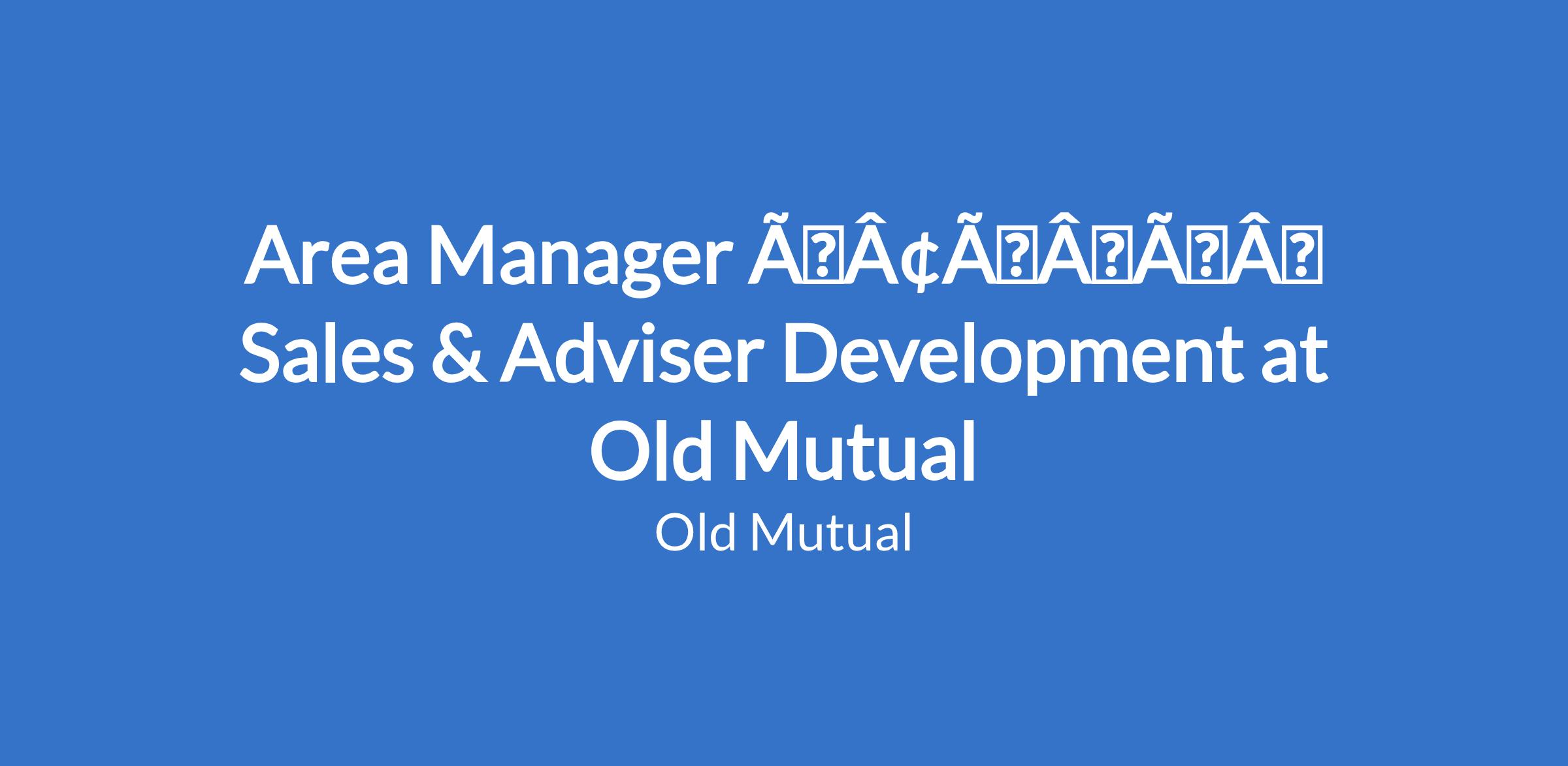 Area Manager âÃÂàSales & Adviser Development at Old Mutual
