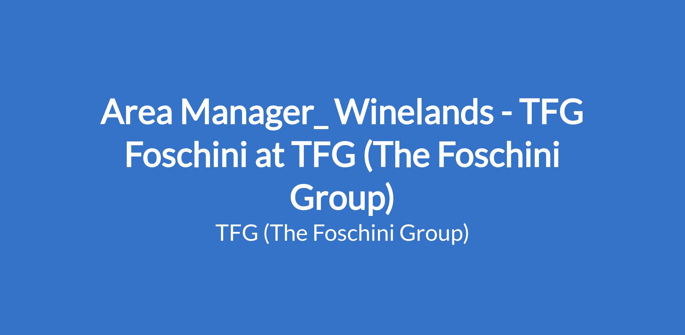 Area Manager_ Winelands - TFG Foschini at TFG (The Foschini Group)