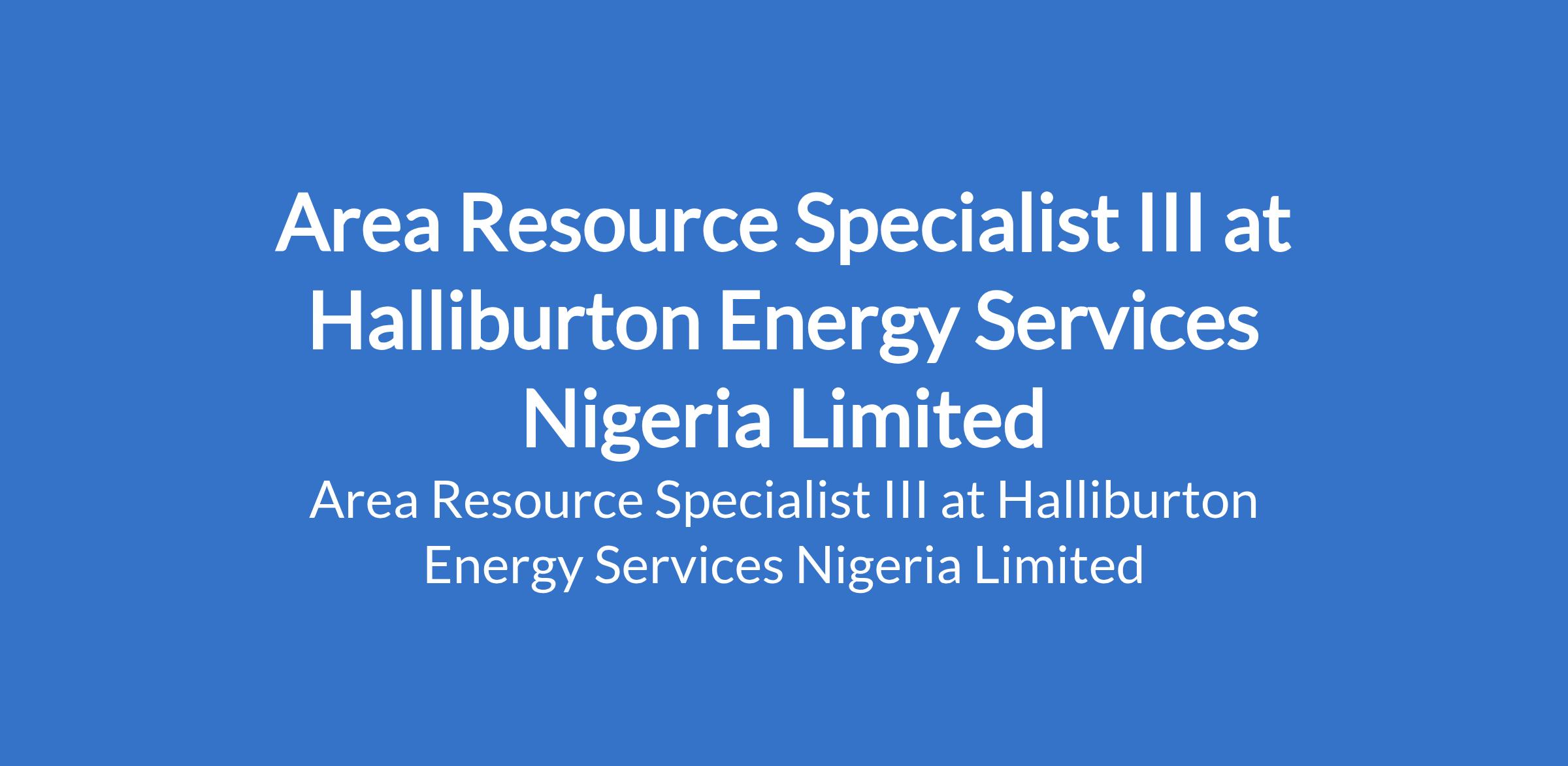 Halliburton Energy Services Nigeria Limited is recruiting to fill the position of: Area Resource Specialist III. The position is located in Port Harcourt, Rivers State. Interested candidates should possess a High School Diploma or similar education and a minimum of 3 years experience as an Area Resource Specialist II or equivelant.