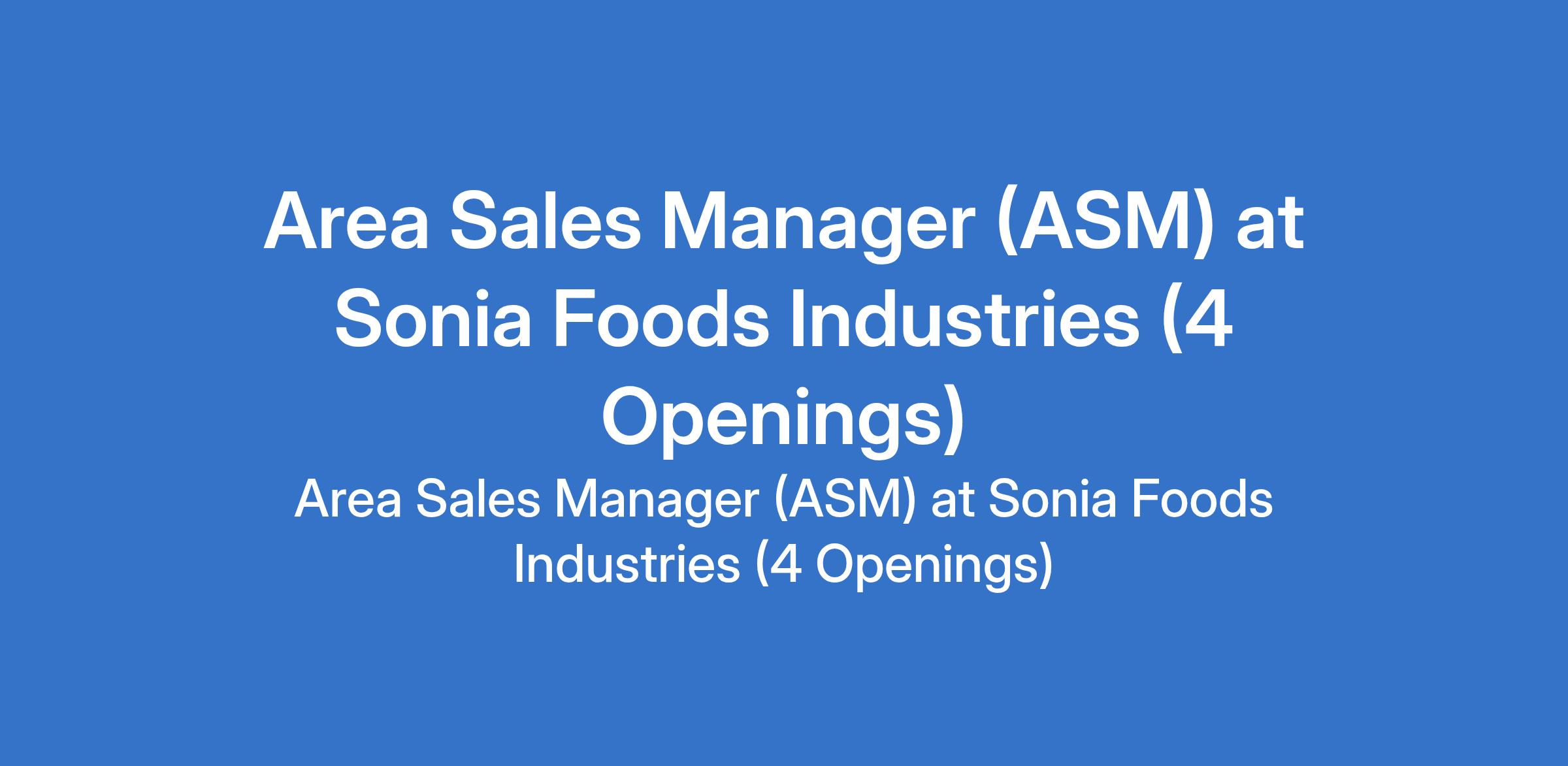 Sonia Foods Industries is recruiting to fill the position of: Area Sales Manager (ASM). The position is located in Abuja (FCT), Benin - Edo, Lagos and Oyo States. Interested candidates should possess a Bachelors Degree or HND qualification in Business Administration, Marketing, Economics, or a related discipline with a minimum of 8 years total sales experience in the FMCG industry and at least 4 years FMCG experience with a reputable organization.