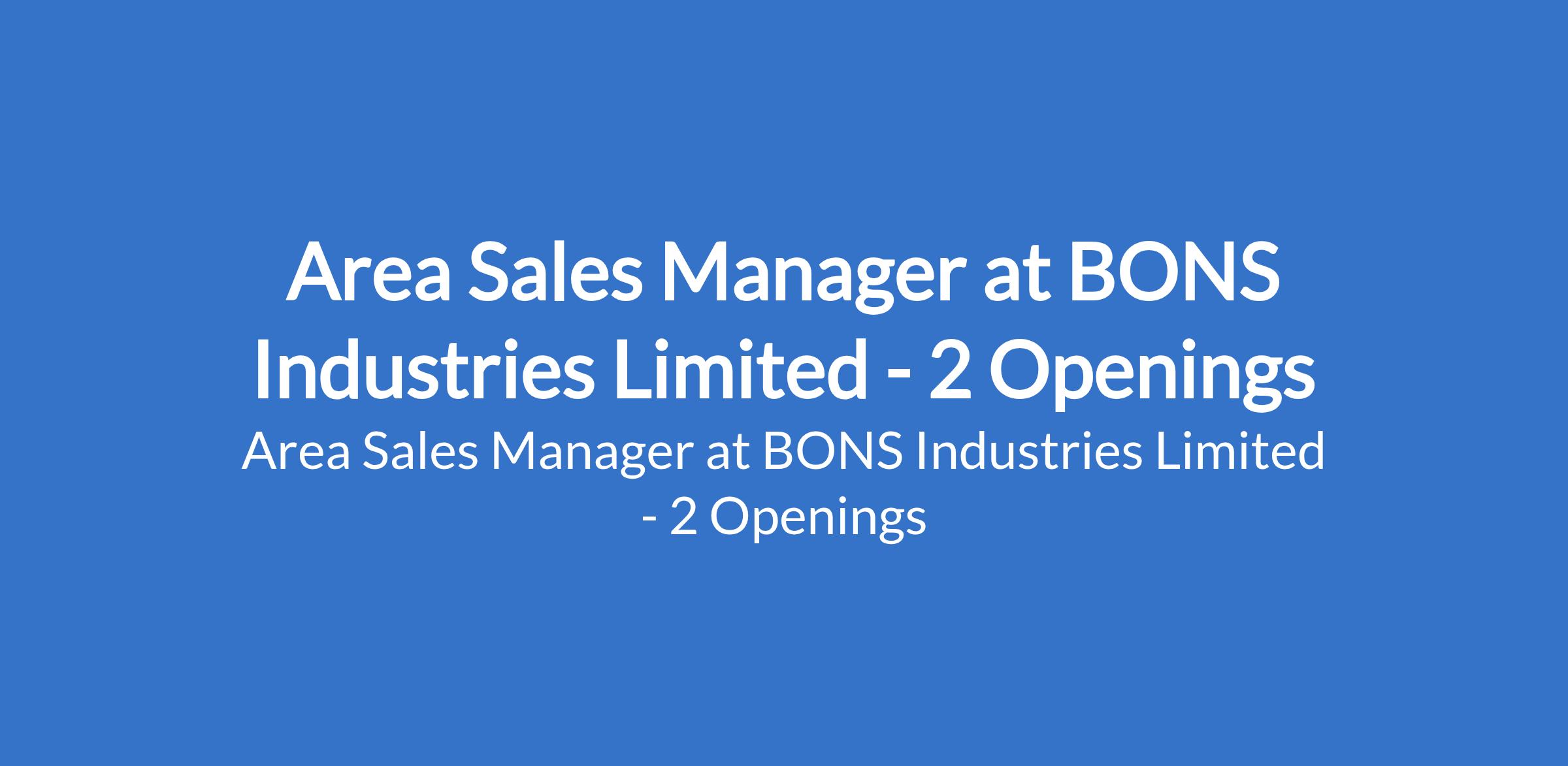 BONS Industries Limited is recruiting to fill the position of: Area Sales Manager. The position is located in Enugu and Ebonyi States. Salary: N300,000 - N400,000 / month. Interested candidates should possess minimum of a Bachelors Degree in Marketing, Business Administration, Economics, or any related field with 5 - 8 years of progressive experience in sales.