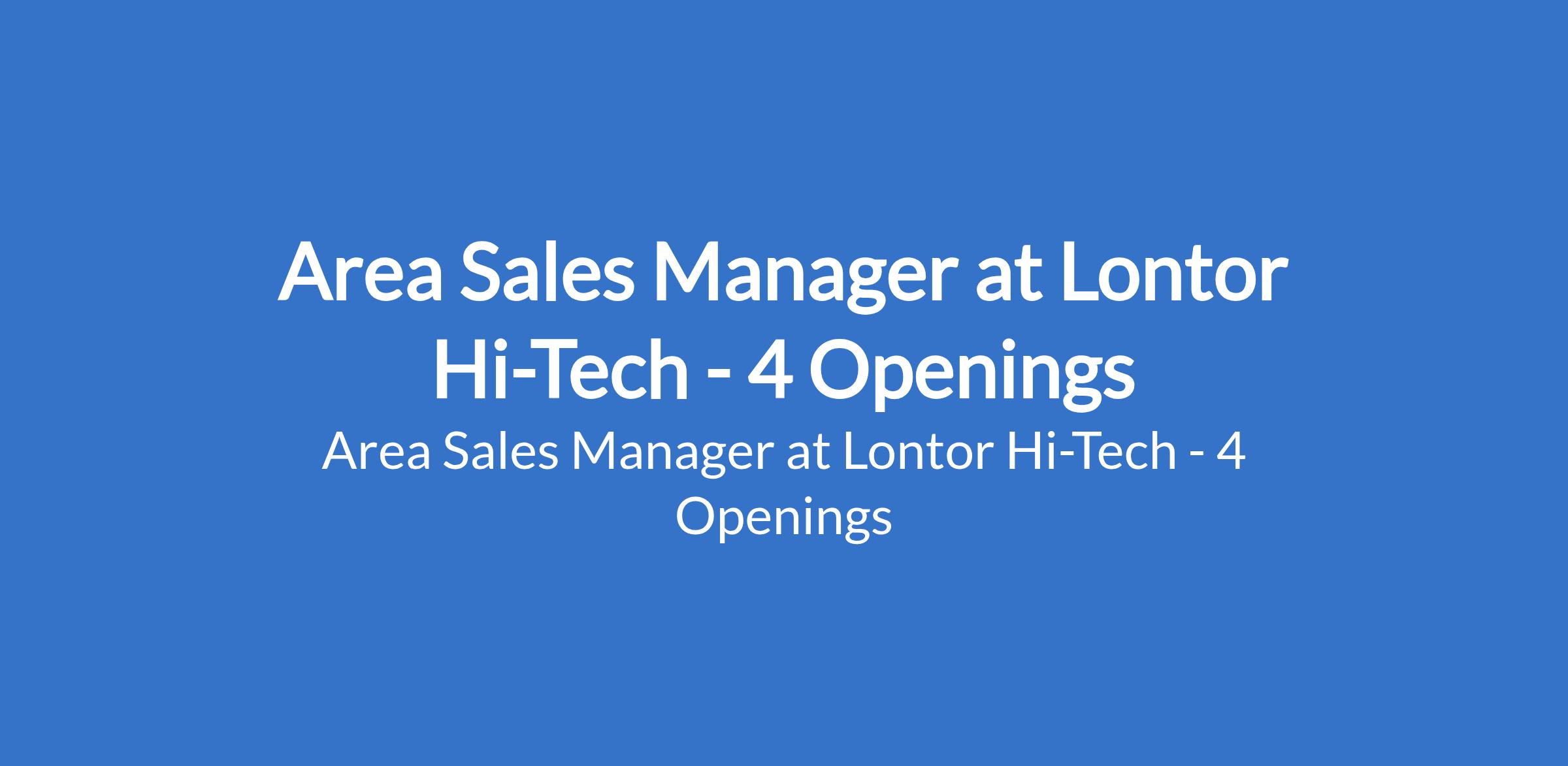 Area Sales Manager at Lontor Hi-Tech - 4 Openings
