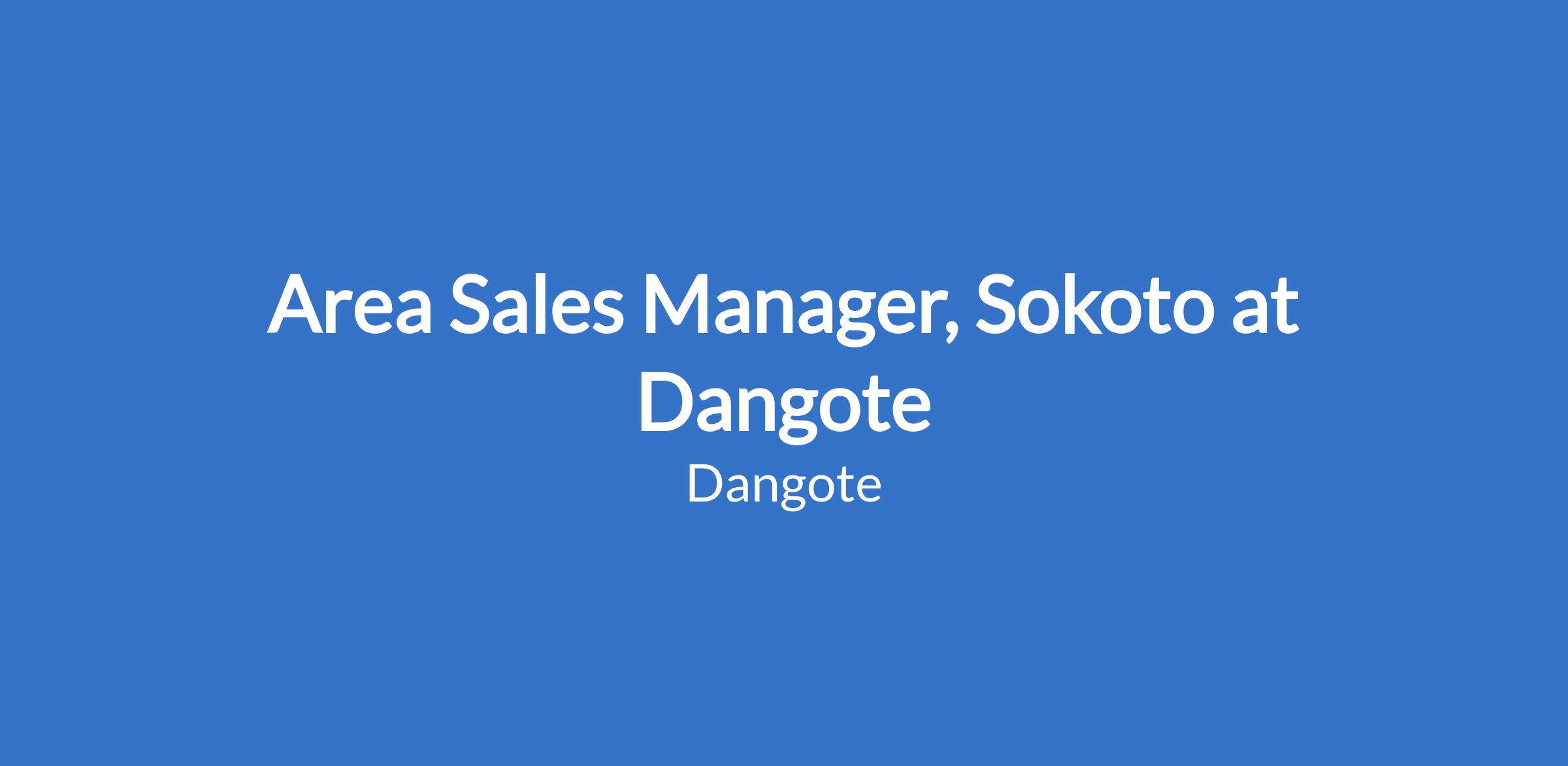Area Sales Manager, Sokoto at Dangote