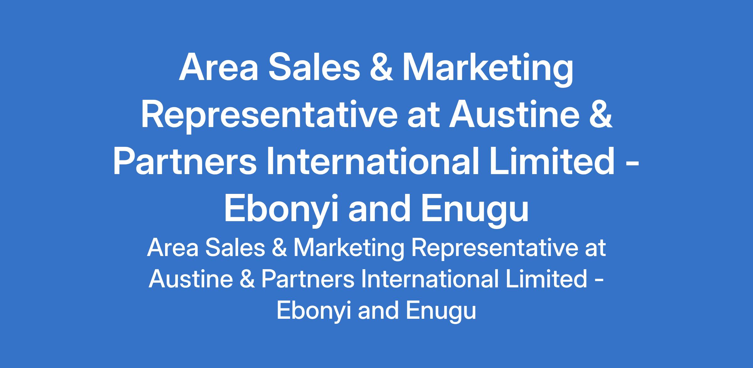 Austine & Partners International Limited is recruiting to fill the position of: Area Sales & Marketing Representative. The position is located in Ebonyi and Enugu States. Interested candidates should possess a B.Sc / HND in Marketing/Accounting/Economics or related courses with 2-3 years sales experience in FMCG, particularly in selling premium wines and spirits and must live and reside in either Enugu or Ebonyi State.