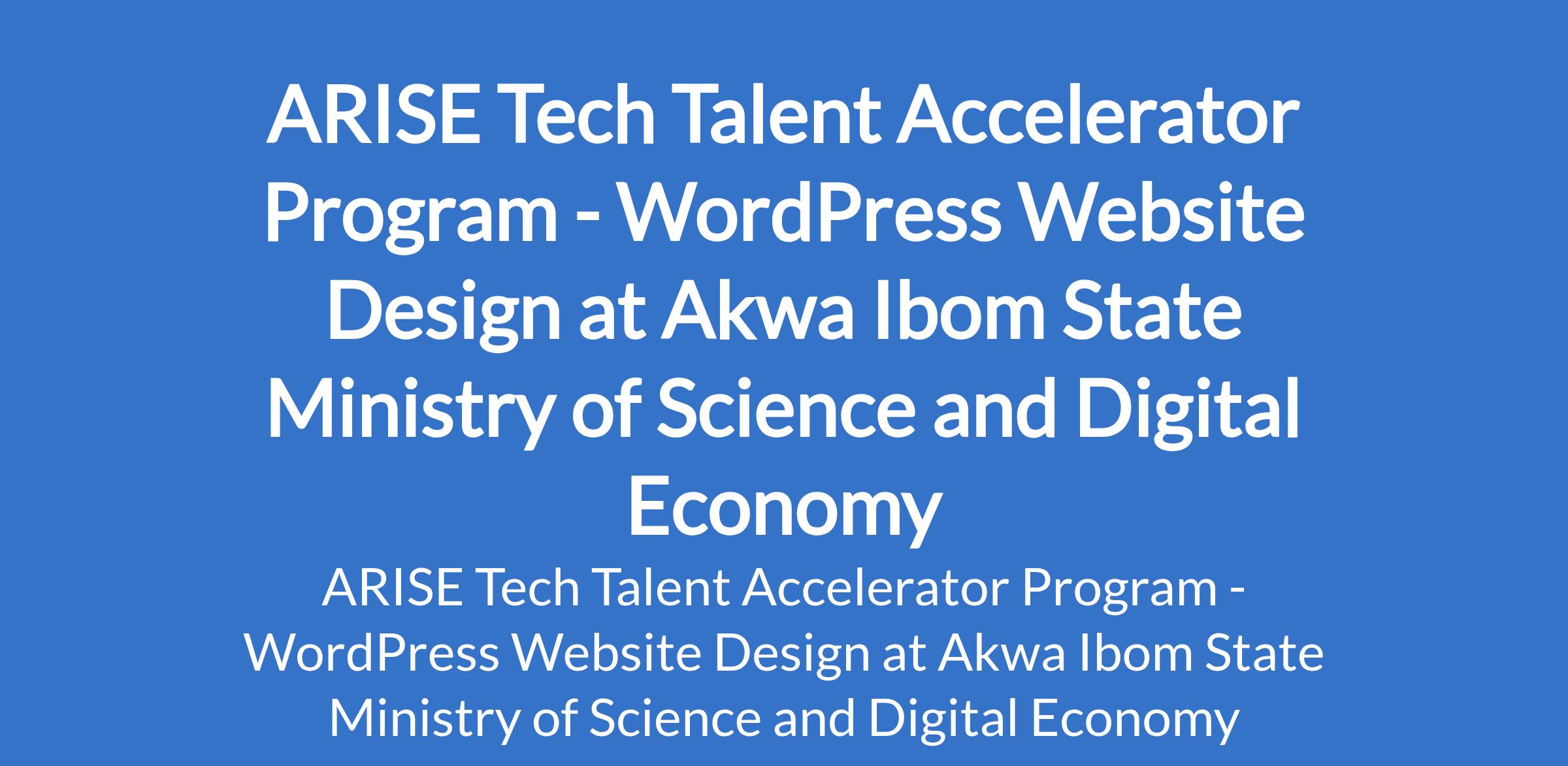 Akwa Ibom State Government through the Ministry of Science and Digital Economy invites applications from suitable candidates for its ARISE Tech Talent Accelerator Program - WordPress Website Design. Interested candidates should possess any of the following Degrees: Master of Philosophy (M.Phil), Master of Business Administration, (MBA), Master of Science (M.Sc), Master of Arts (MA), and Bachelor of Laws (L.LB).