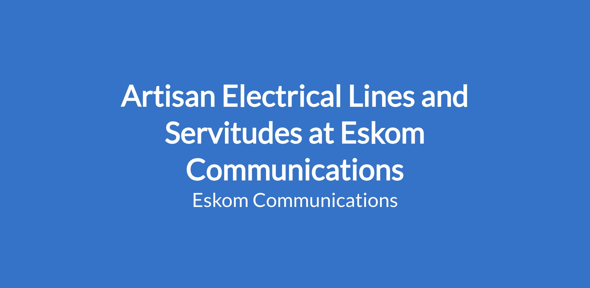 Area of specialization: To perform in a safe and effective manner power line inspections, servitude and line maintenance, including defect repairs and restoration tasks on transmission lines using approved tools, equipment, procedures and techniques to ensure optimal line performance and sustainable and continuous quality of supply. Task Grade: T09. Department: Lines and Servitudes. Location: Western Cape - Bellville (Stikland).