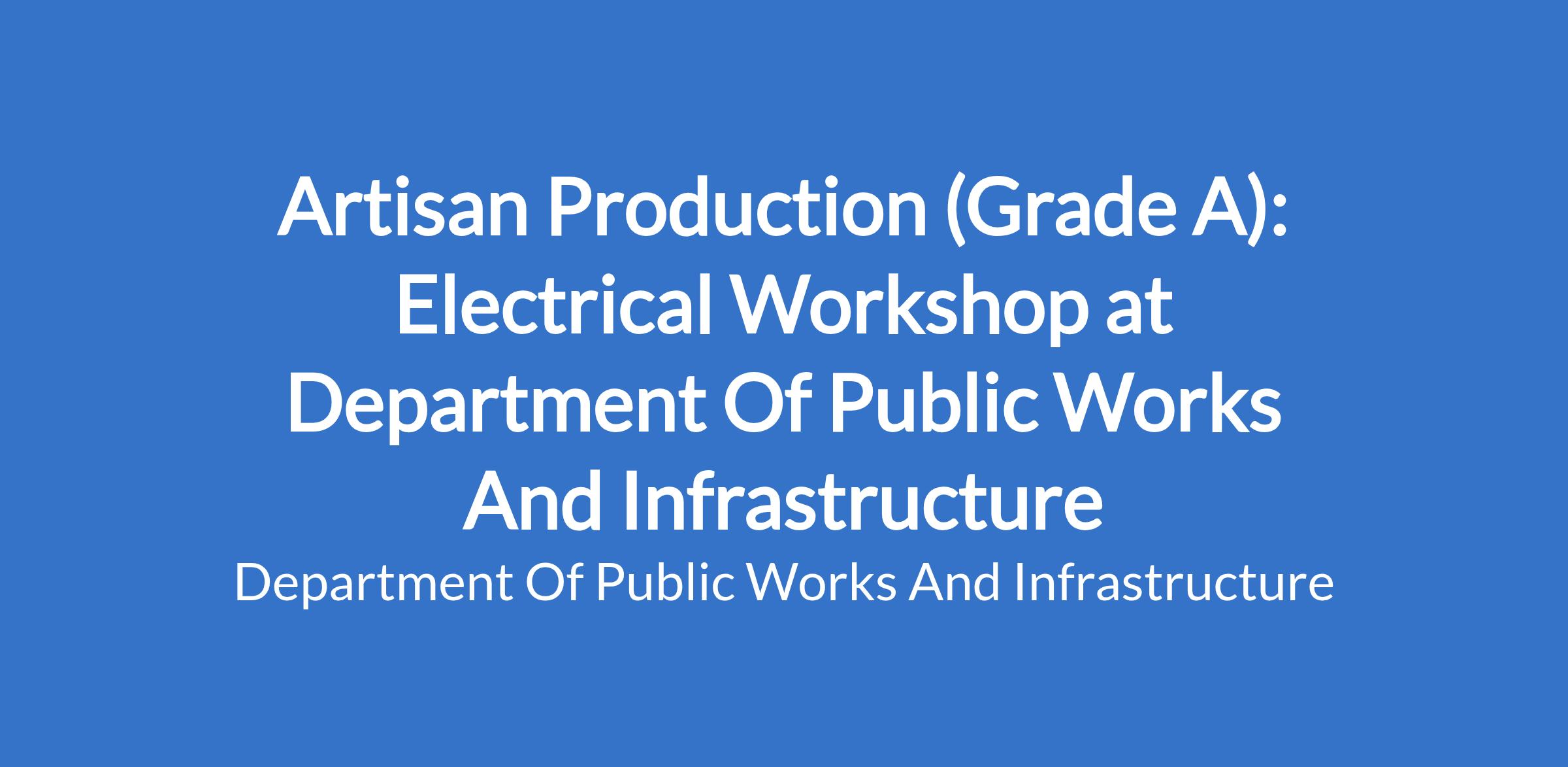 Appropriate Trade Test in Electrical. A valid Driver`s License. Knowledge of Occupational Health and Safety Act 85, of 1993 and Regulations. Must have General knowledge of Electrical tools, equipment in the workshop.