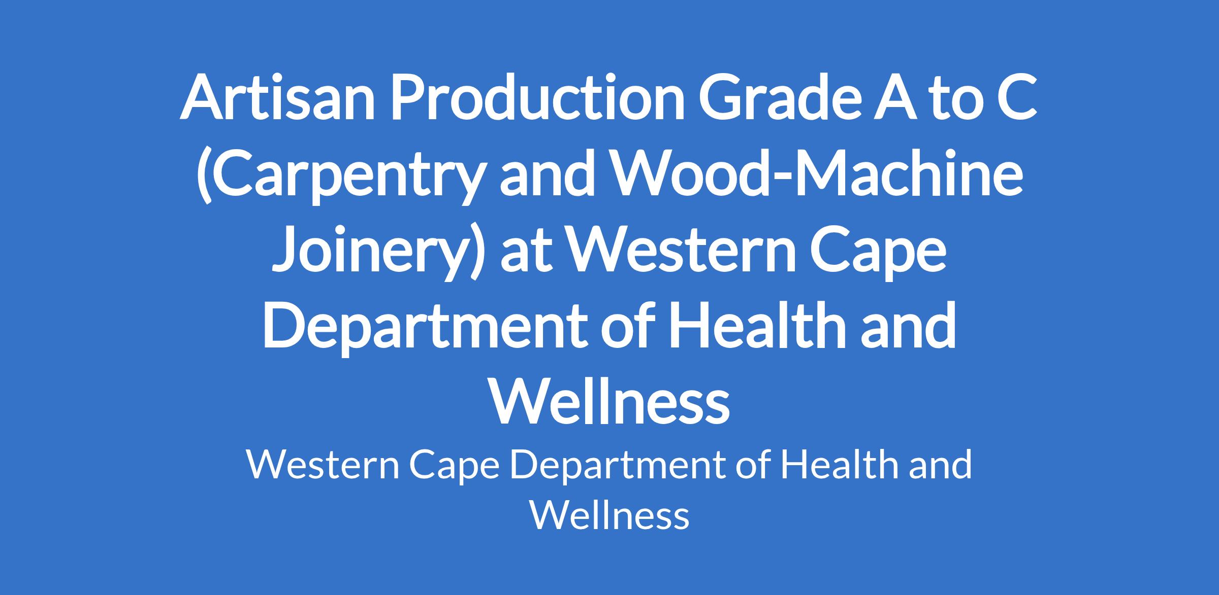 Carry out routine inspections, maintenance and repairs including alterations and installation of building/carpentry/furniture, fittings and in the manufacturing of assistive devices. Assist Artisan Foreman with administration duties, planning and schedules. Complete and return repair requisitions and assist in ordering and controlling in workshop, materials and tools. Do quality checks on all maintenance and repair work performed and keep register of all work done. Liaise with all relevant personnel in ensuring New Somerset Hospital is within regulations regarding all carpentry and wood machine joinery. Supervise and training of staff.