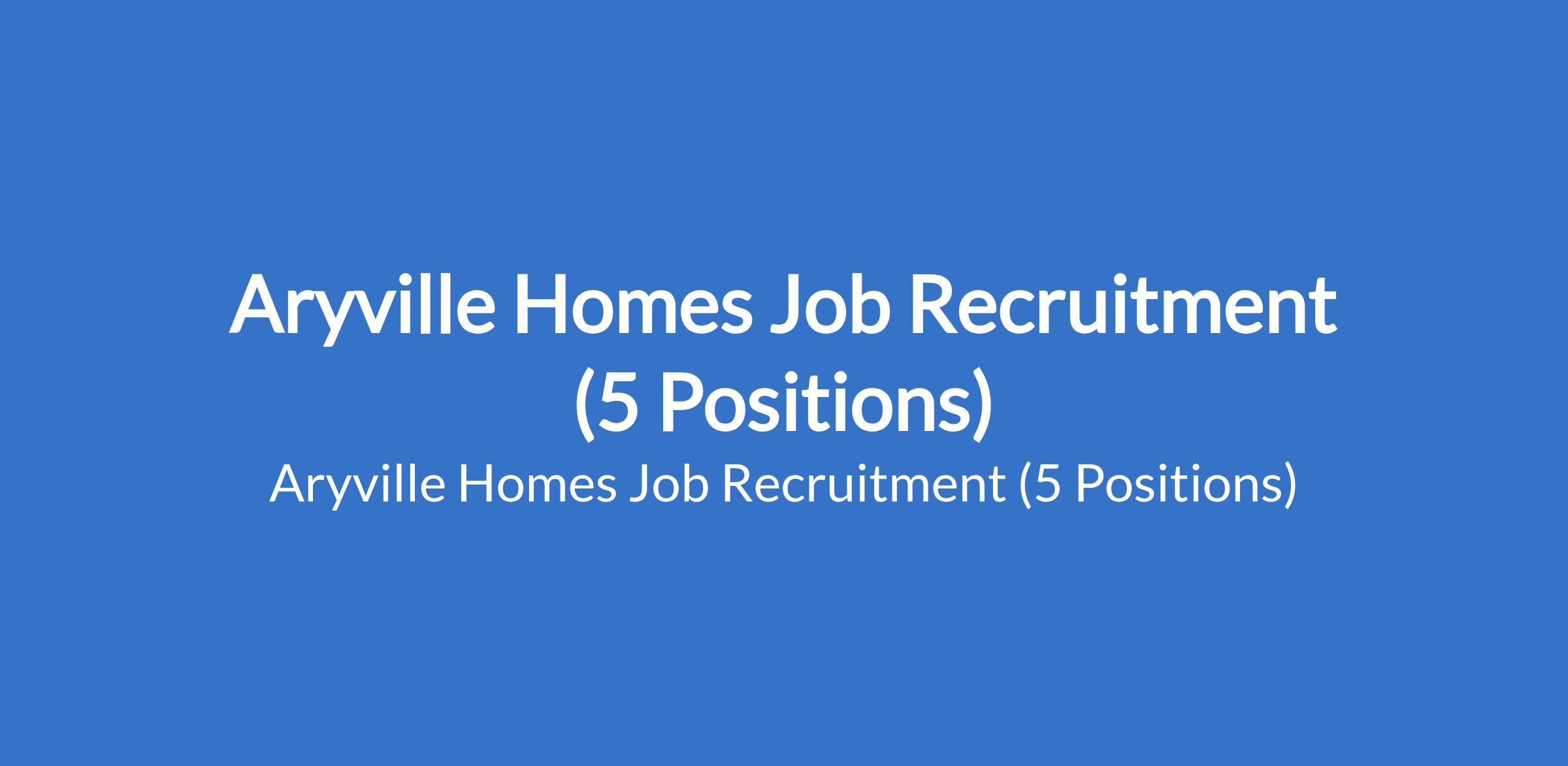 Aryville Homes Job Recruitment (5 Positions)
