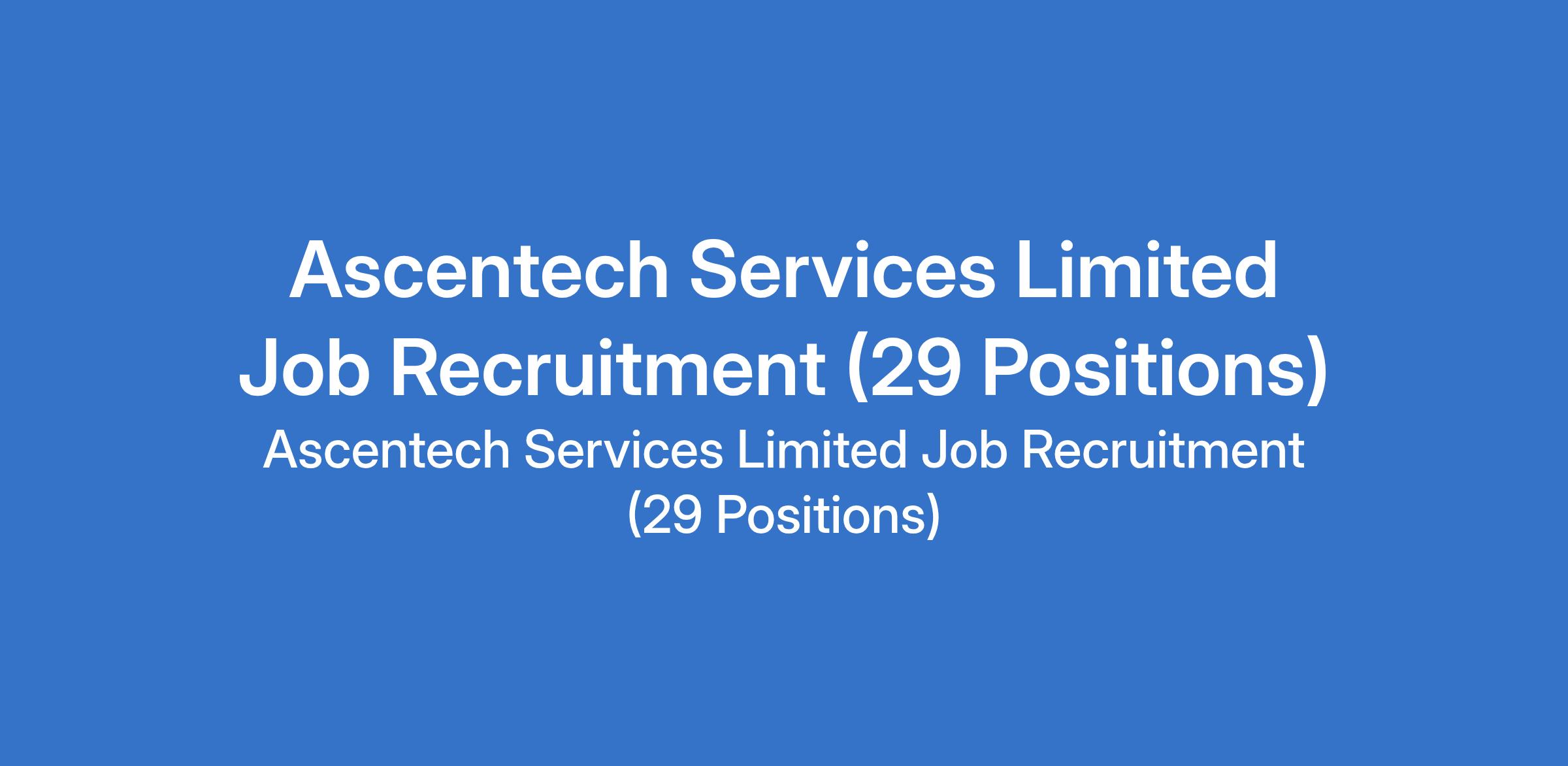 Ascentech Services Limited is recruiting suitably qualified candidates to fill the following positions in Oyo, Ogun, Benue, Kano, and Lagos States: Digital Manager (Hair & Beauty Industry), Operations Manager, Administrative Assistant, Territory Developer (Sales Executive), Sales Executive HVAC Accessories, Electrical Sales Engineer / Executive, Account Officer, Storekeeper, Quantity Surveyor, Laboratory Technician & Senior Laboratory Technician; Grill Chef; Mechanical Engineer (Shift Operations); Showroom Hostess (Concierge); Sales Executive (Lubricants); Facility Manager; Technical Production Supervisor; Corrugation Machine Operator; and Maintenance Manager, e.t.c.