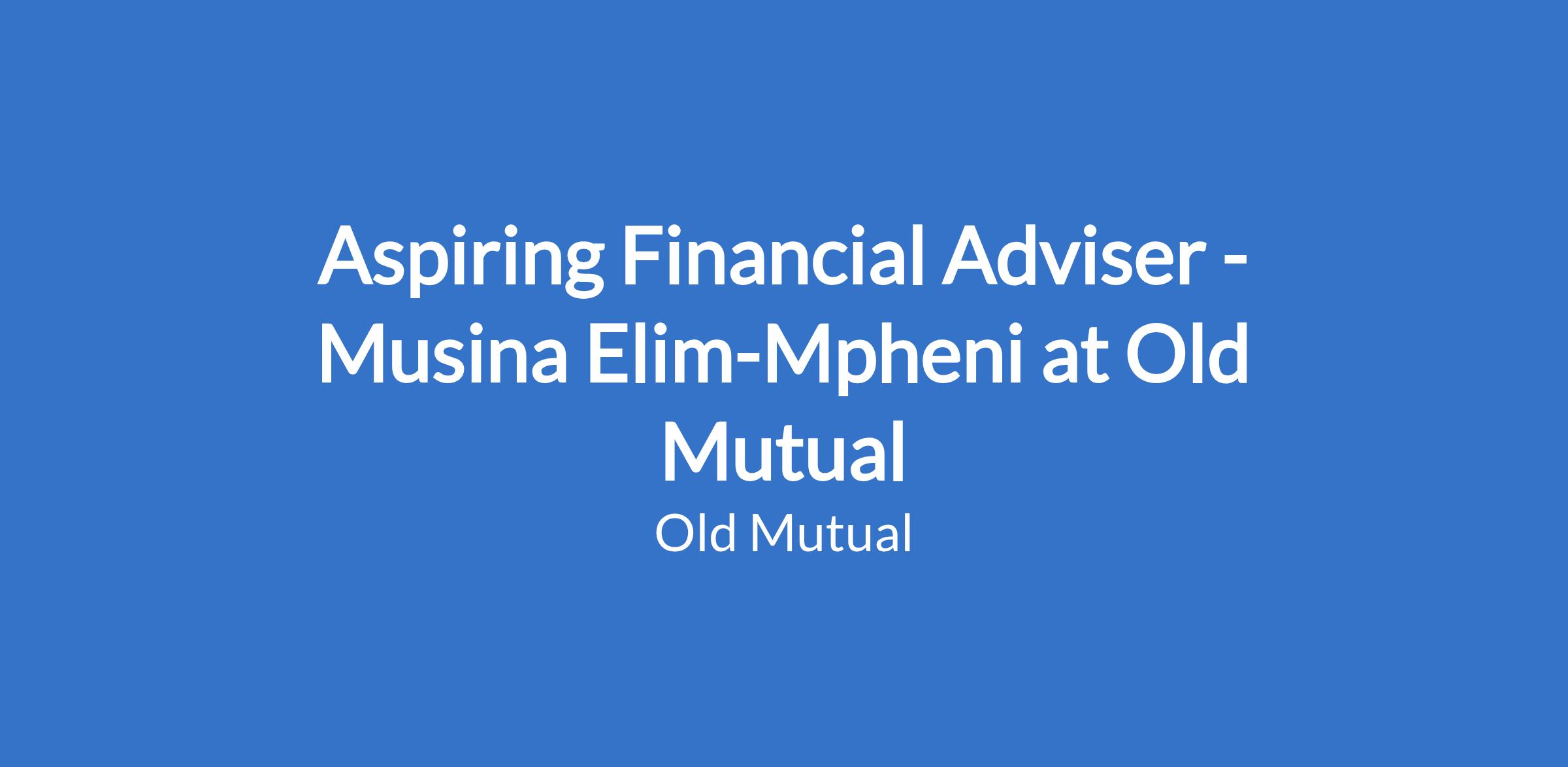 Aspiring Financial Adviser - Musina Elim-Mpheni at Old Mutual