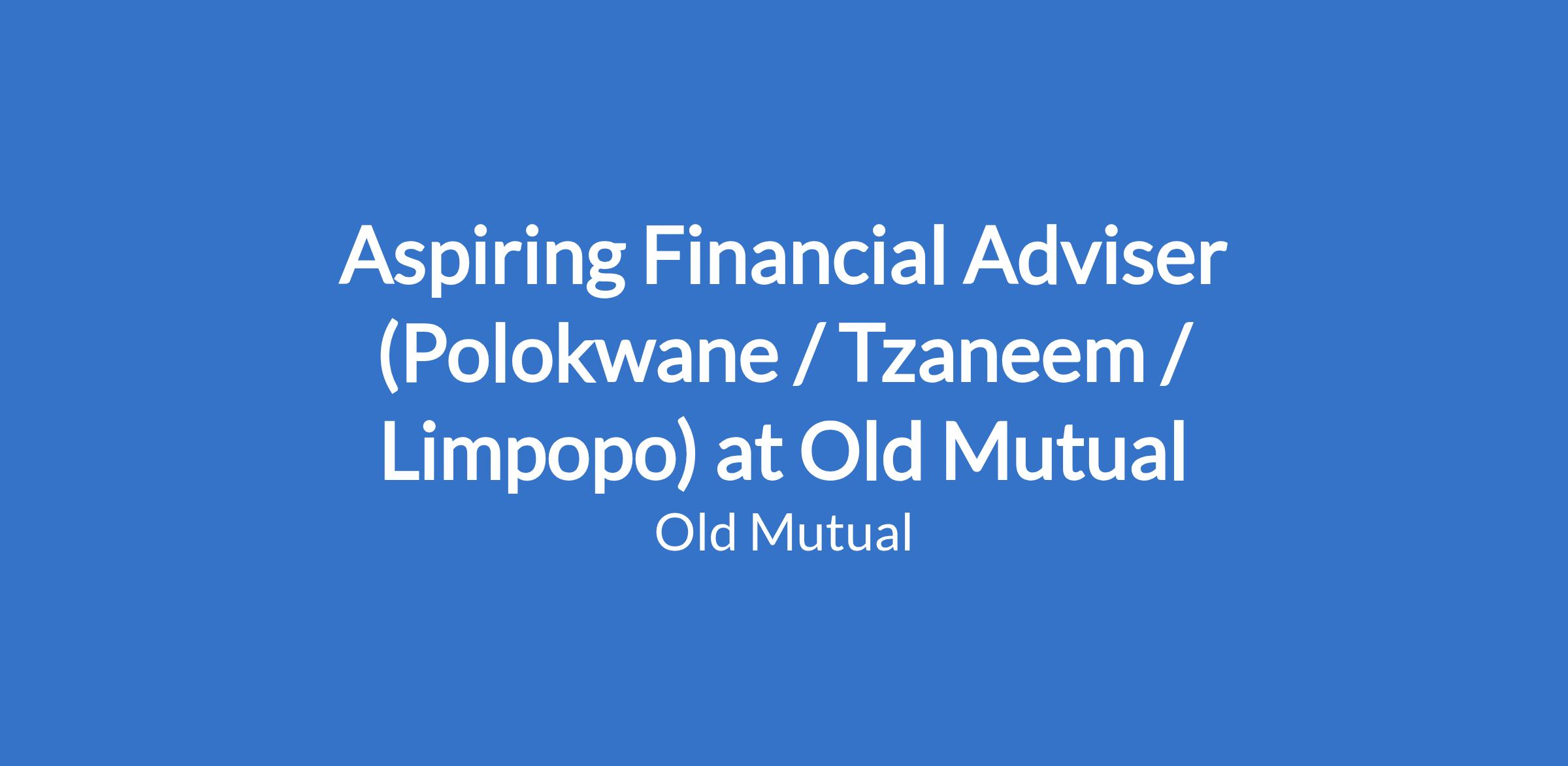 Aspiring Financial Adviser (Polokwane / Tzaneem / Limpopo) at Old Mutual