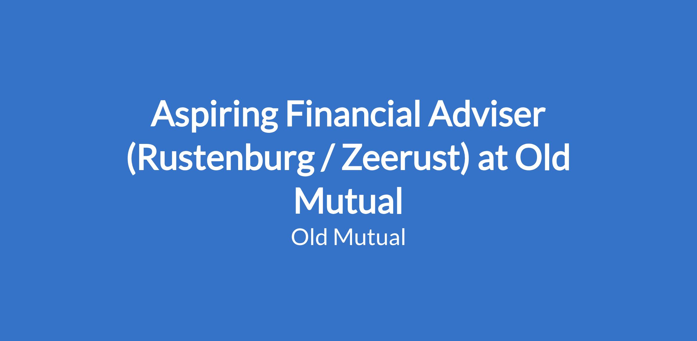 Aspiring Financial Adviser (Rustenburg / Zeerust) at Old Mutual