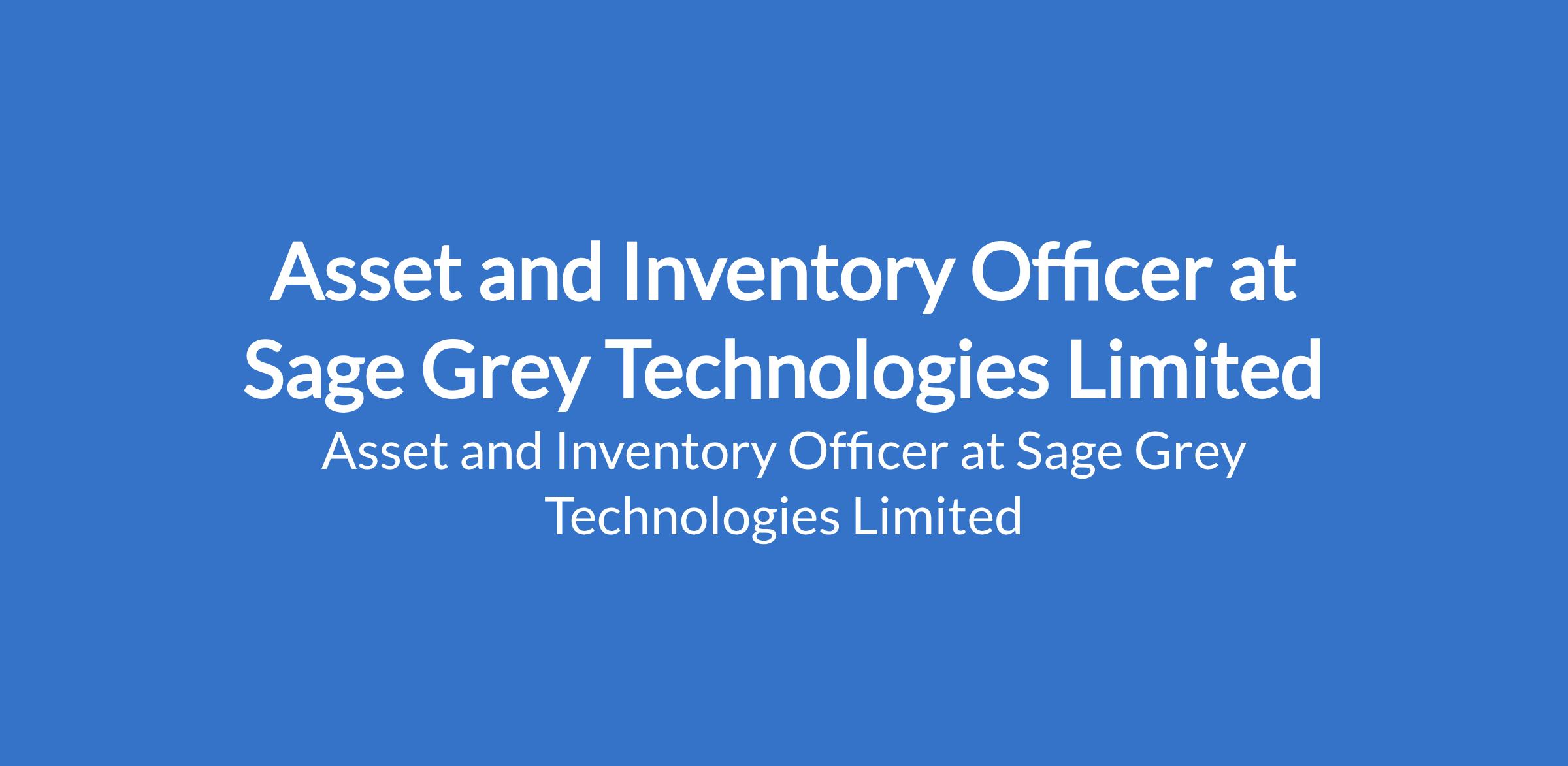 Sage Grey Technologies Limited is recruiting to fill the position of: Asset and Inventory Officer. The position is located in Isolo, Lagos State. Interested candidates should possess a Bachelors Degree in Business Administration, Logistics, Supply Chain Management, or a related field with a minimum of 4 years relevant experience in asset management, Warehouse and Inventory Management and/or administrative operations.