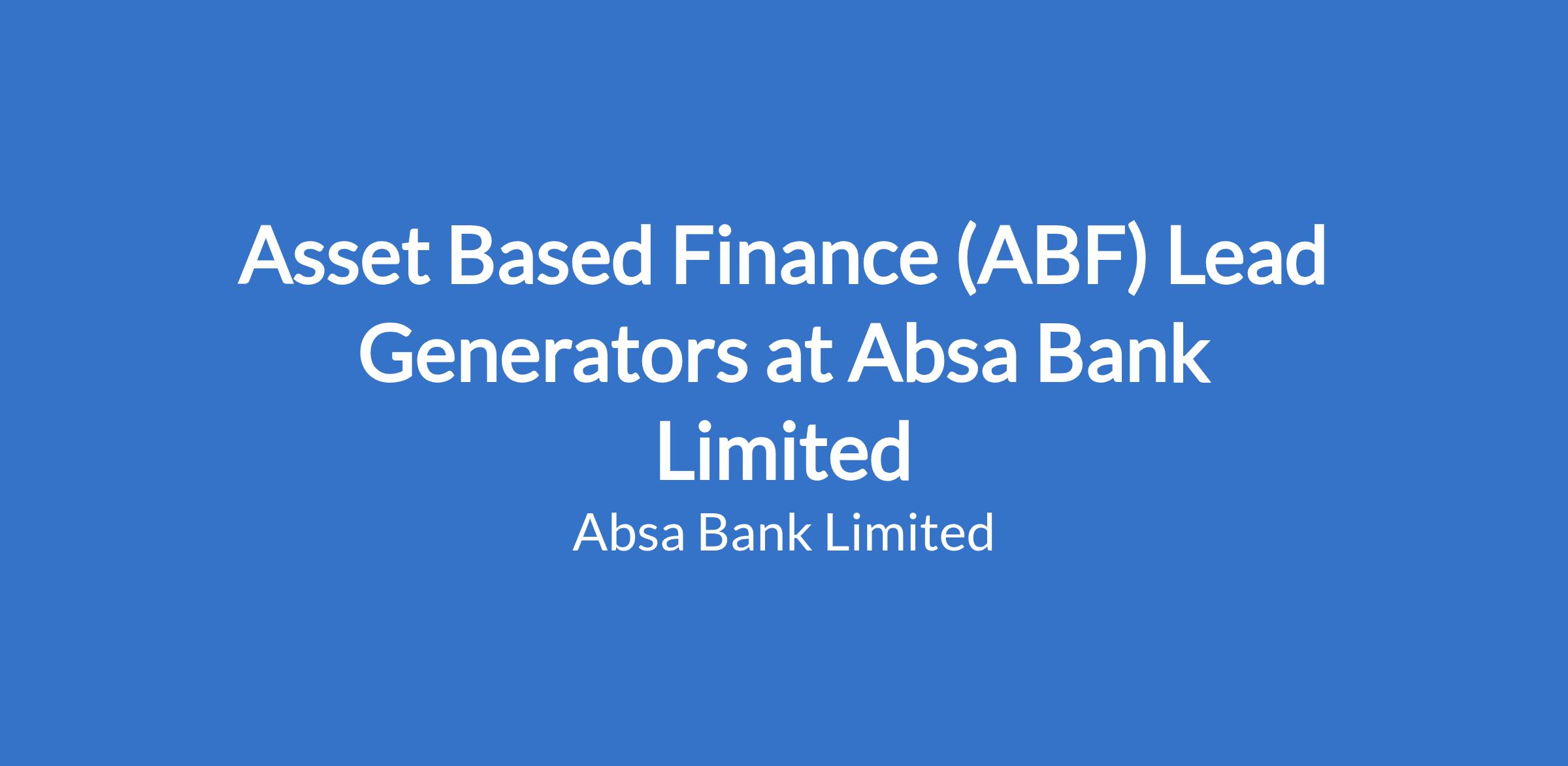 Deliver exceptional sales performance by identifying and meeting customer needs through selling Asset Based Finance & cross selling other Absa Bank products and services.