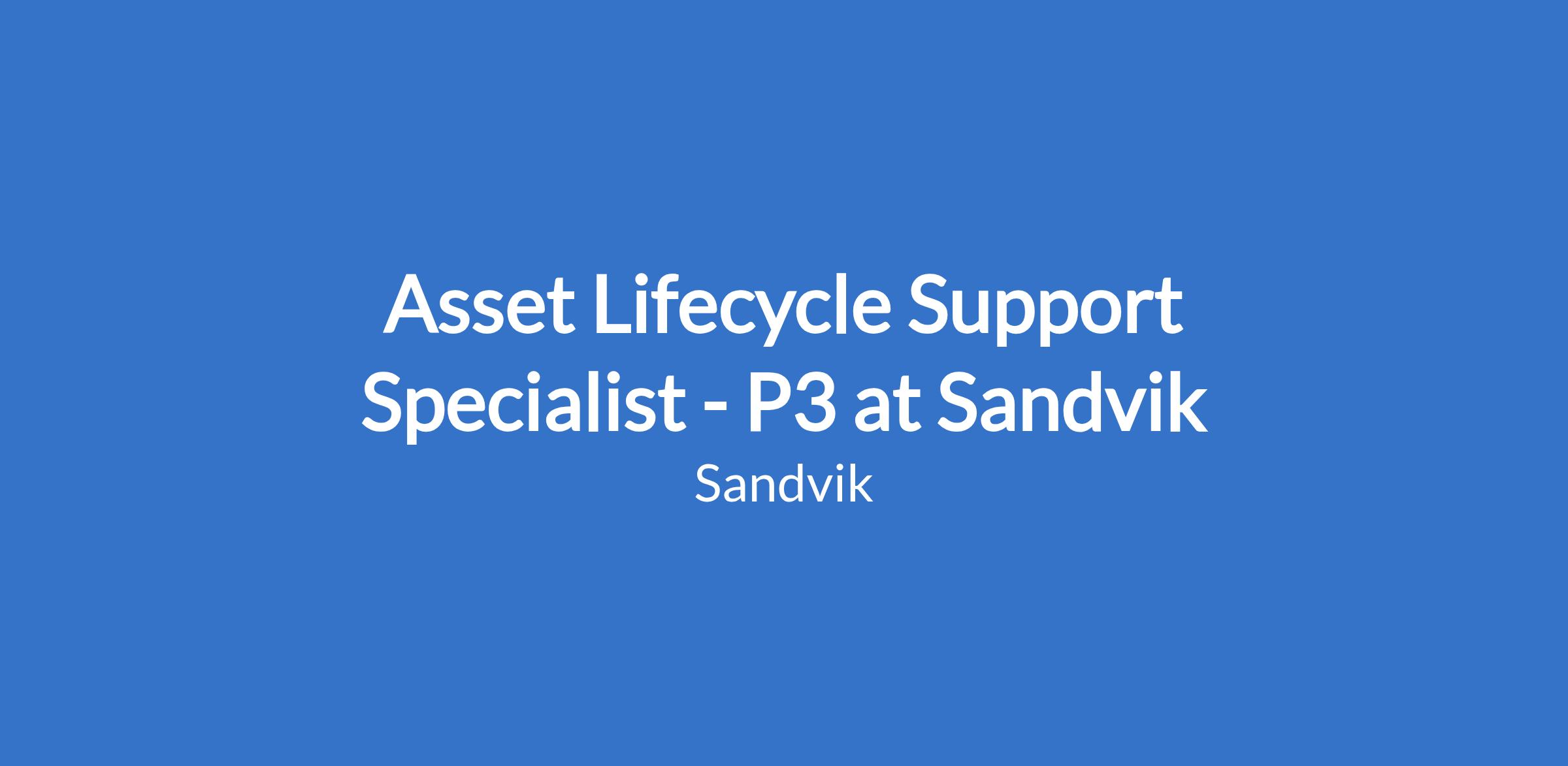 Asset Lifecycle Support Specialist - P3 at Sandvik