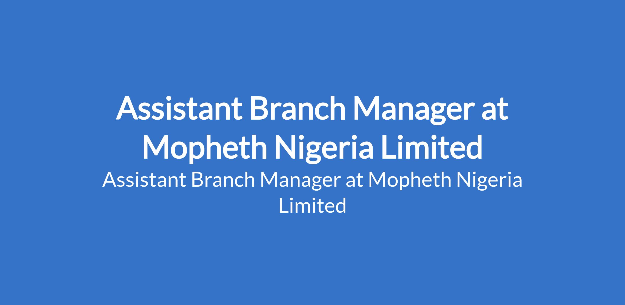 Mopheth Nigeria Limited is recruiting to fill the position of: Assistant Branch Manager. The position is located in Lekki / Victoria Island - Lagos State. Interested candidates should possess relevant qualifications with 5 10 years experience in a supermarket / retail environment.