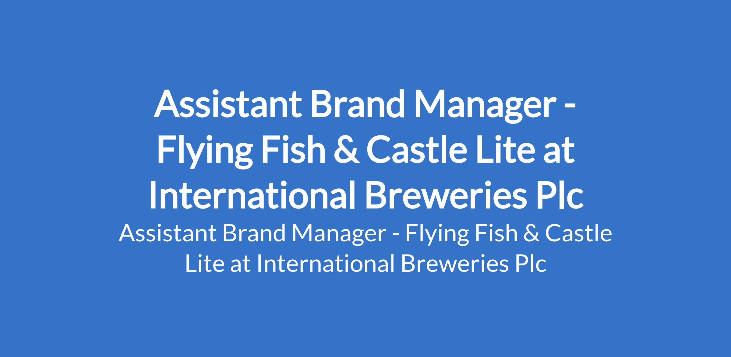 International Breweries Plc is recruiting to fill the position of: Assistant Brand Manager - Flying Fish & Castle Lite. Interested candidates should possess a Bachelor's Degree in a relevant field with a minimum of 2 years relevant brand management/marketing experience.