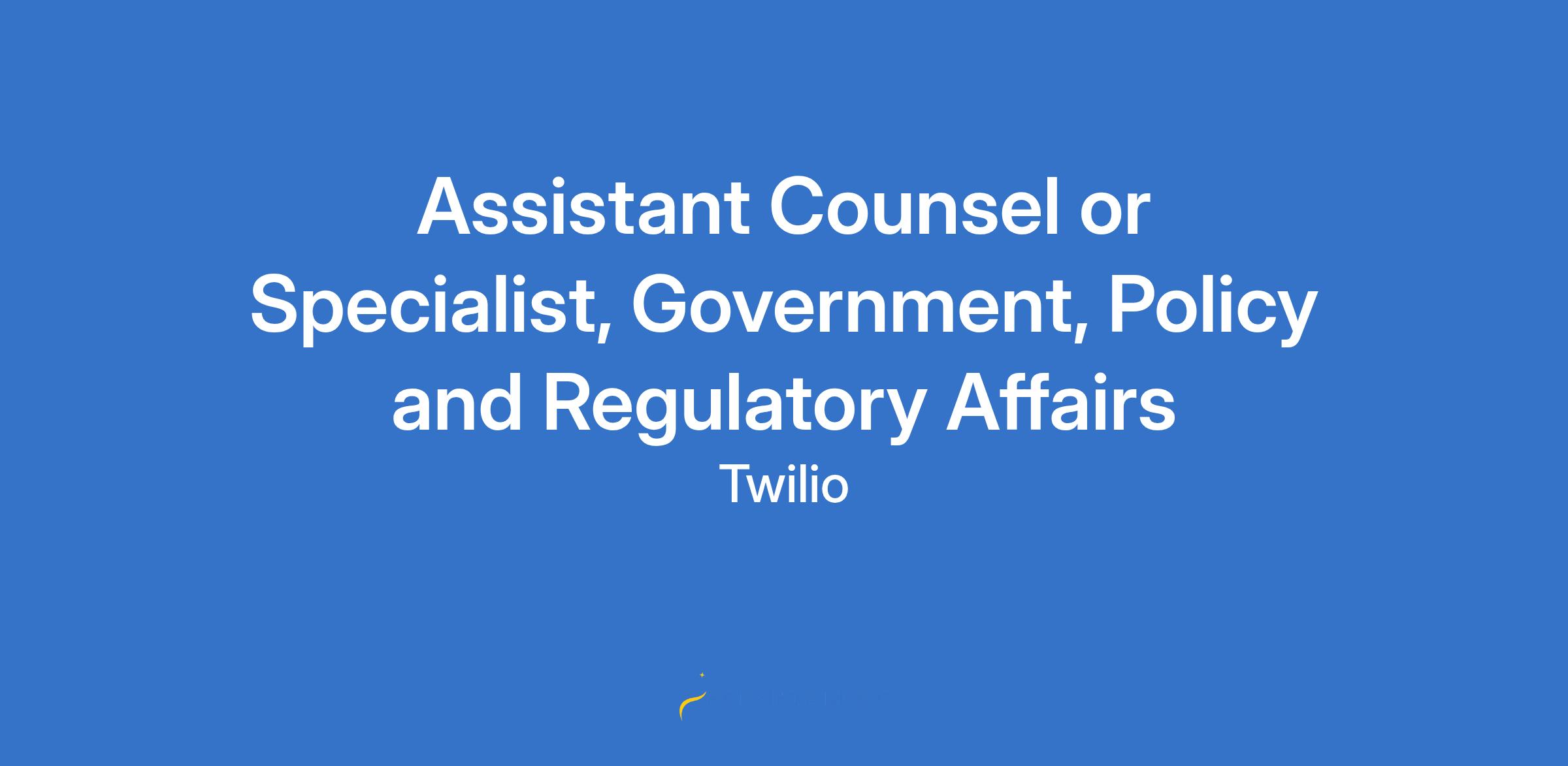 Assistant Counsel or Specialist, Government, Policy and Regulatory Affairs