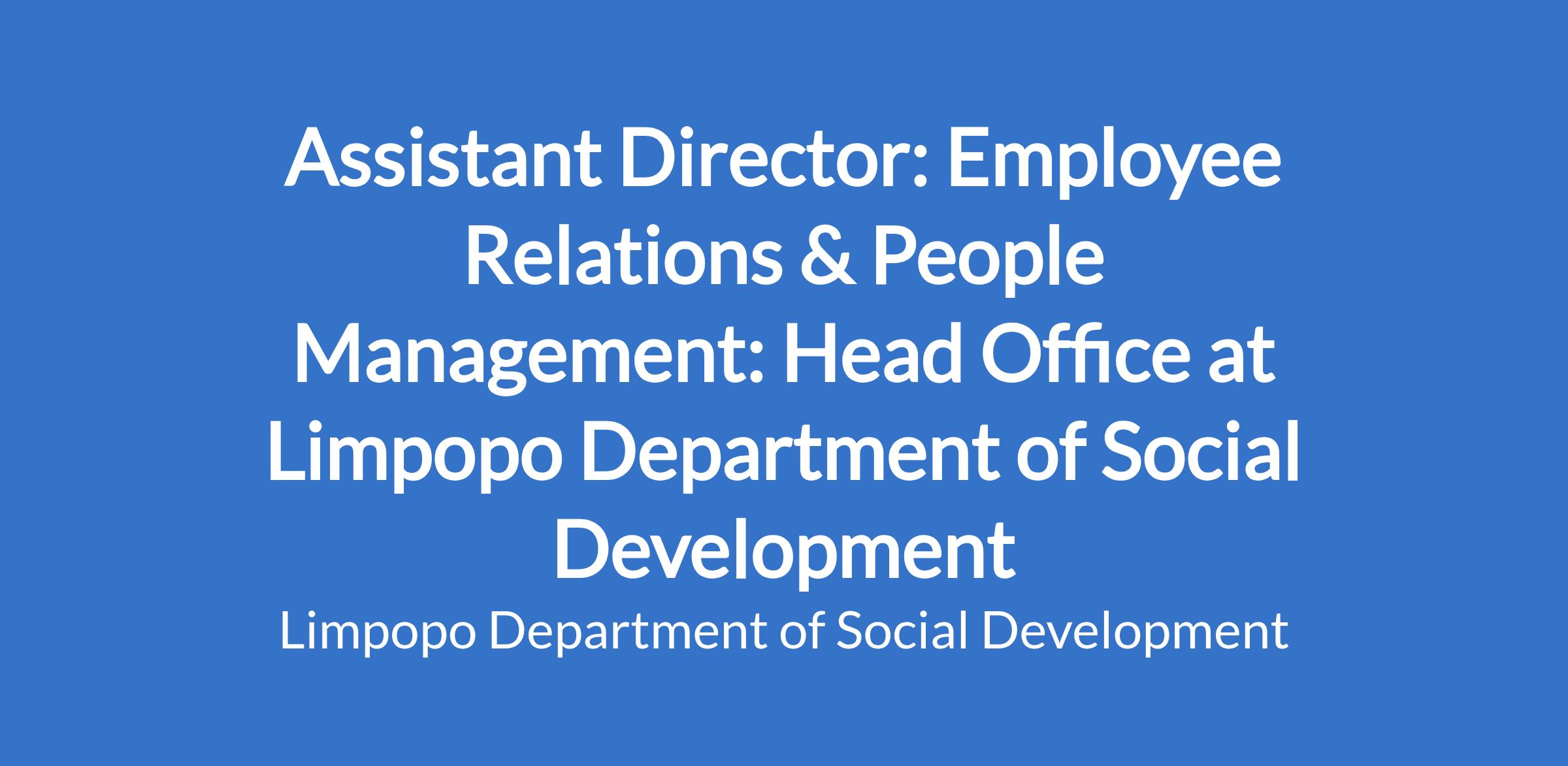 KNOWLEDGE AND SKILLS: Labour Relations Act, Basic Conditions of Employment Act, Public Service Act, Employment Equity Act, Public Service Regulations, Human Resource Management policies, Collective bargaining agreements, Public Service Coordination and Bargaining Council's Resolution, PHSDSBC Resolutions Policy/ guideline formulation, Public Finance Management Act. Management skills, Problem solving skills, Organizing, Leadership, Interpretation of legislation/policies. Budgeting /Financial, Negotiation, Verbal /Written communication. People Management.
