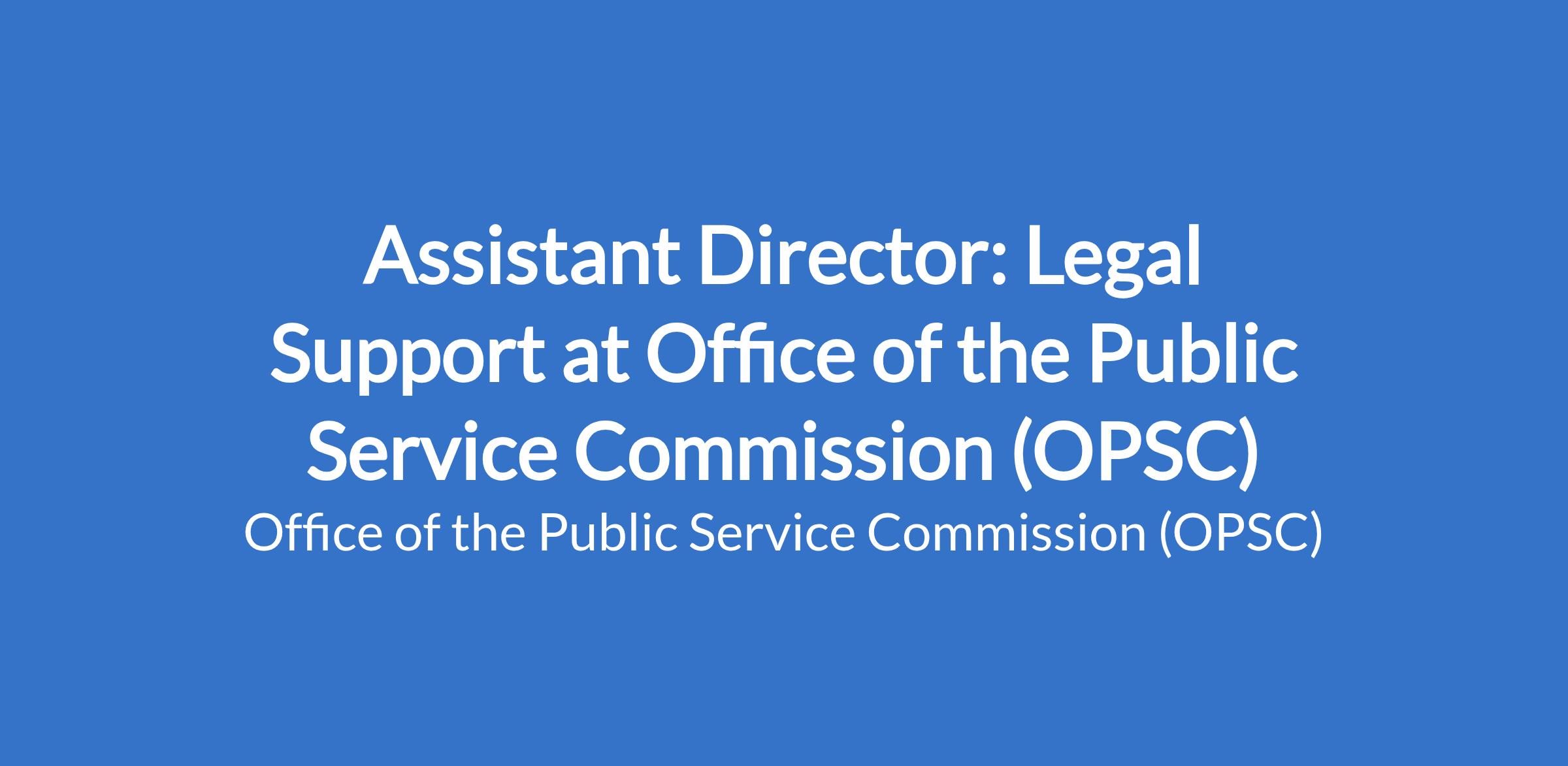 Conduct legal research and support. Assist in drafting legal opinions for the PSC and OPSC. Assist in providing legal advice and support to the PSC and OPSC.