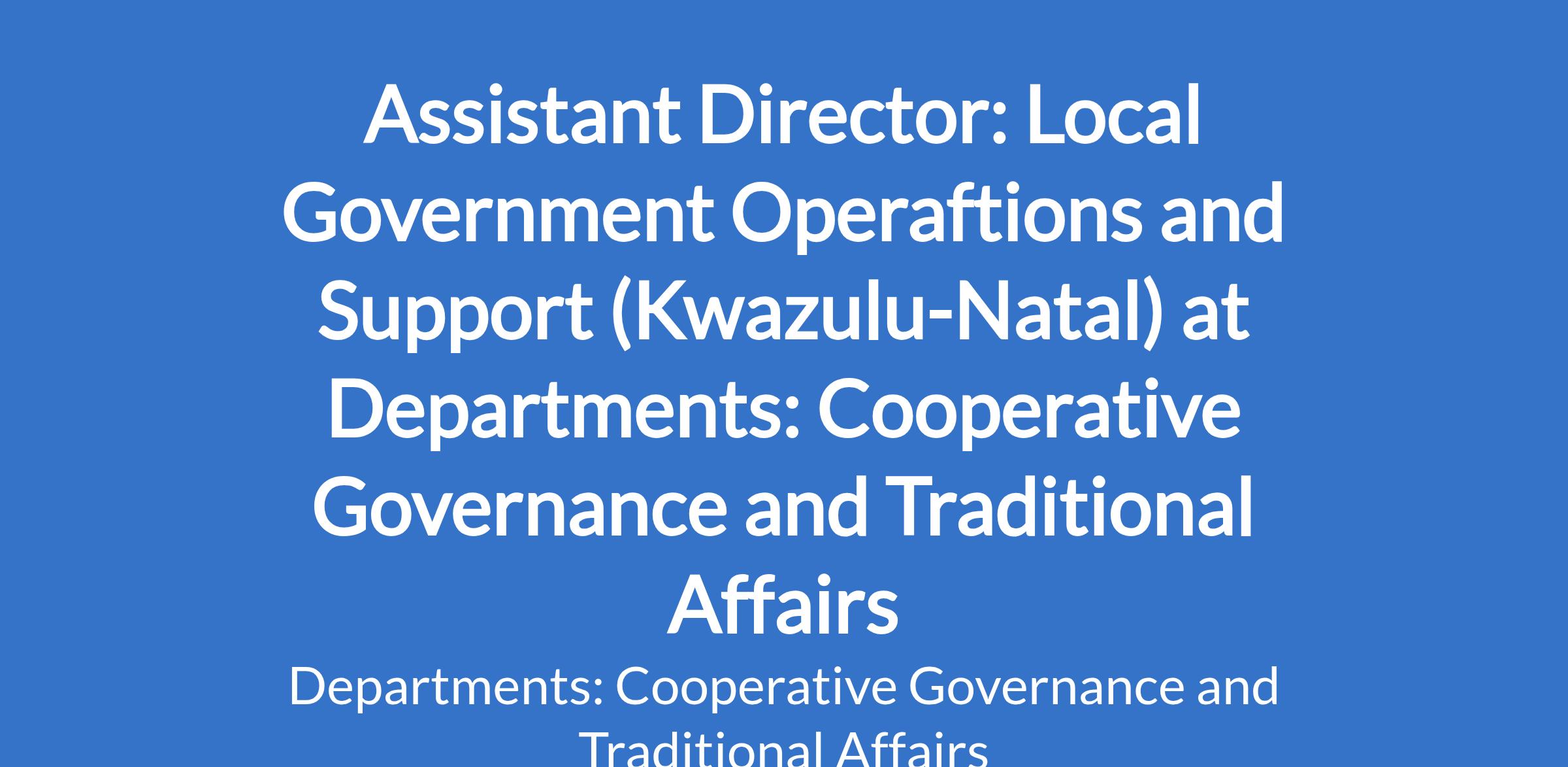 A National Senior Certificate and a three-year National Diploma or Bachelor's Degree in Public Administration / Local Government / Social Science or equivalent qualification at NQF level 6/7 as recognised by SAQA. 3-5 years' experience in a related field. Proficiency in Microsoft Office Software packages (MS Word, MS PowerPoint, MS Teams, MS Excel and Outlook e.t.c). A valid driver's license and willing to undertake Intensive travel. Generic Competencies: Planning and Organising. Problem solving and decision making. Coordination. Project Management. People management and empowerment. Team leadership. Client orientation and customer focus. Diversity management. Communication (verbal and written). Technical Competencies: Knowledge and understanding of Local Government legislation, such as the Municipal Systems and Structures Act. Local Government Structures and Systems, especially in the KZN province. Project coordination skills. Stakeholder engagement. Project/ programme management in the Built environment. Project/ programme formulation. Project monitoring and evaluation.