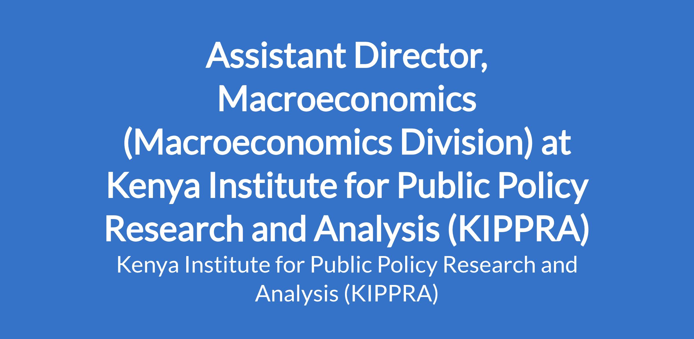 Assistant Director, Macroeconomics (Macroeconomics Division) at Kenya Institute for Public Policy Research and Analysis (KIPPRA)
