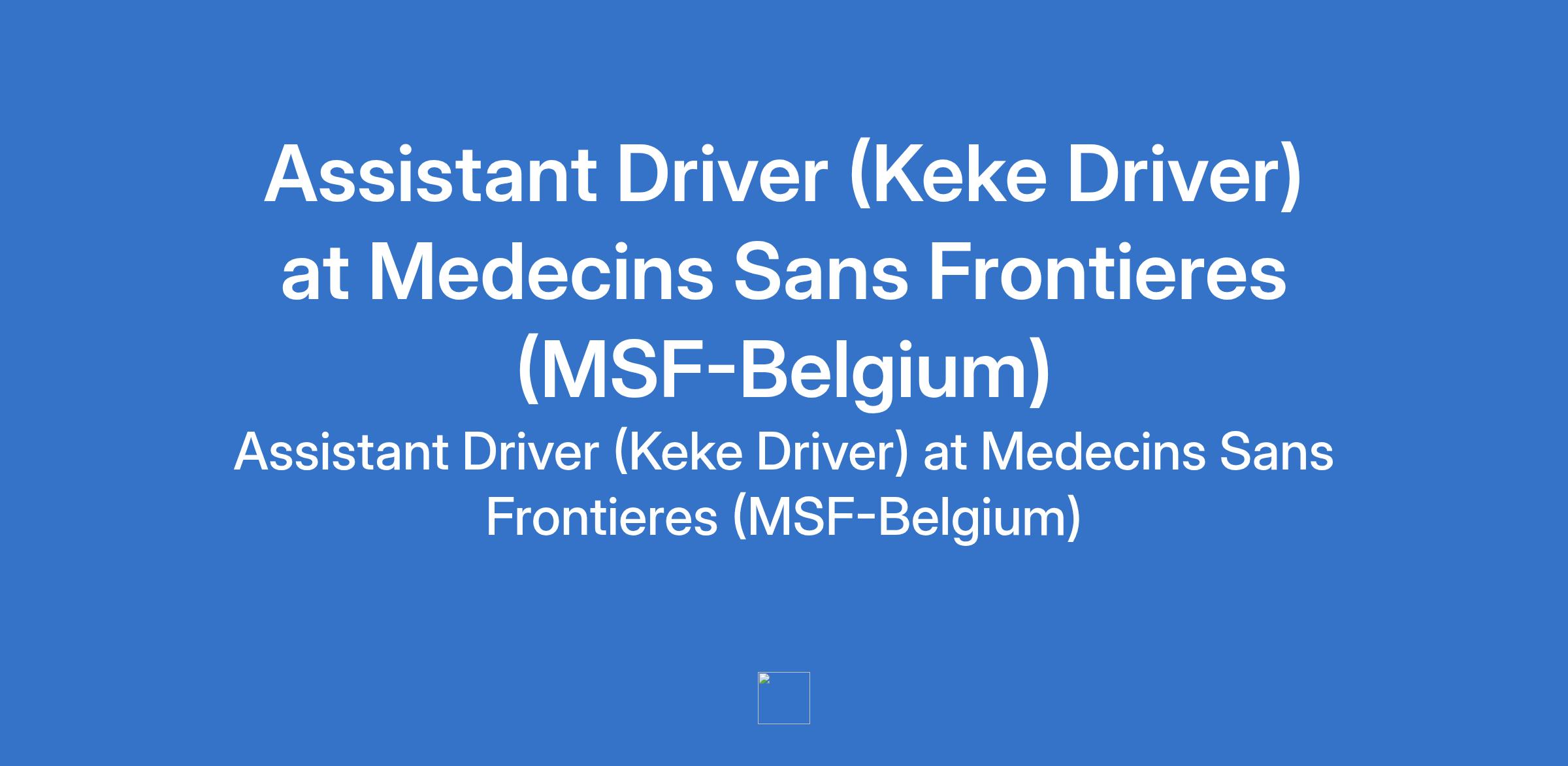Medecins Sans Frontieres (MSF-Belgium) is recruiting to fill the position of: Assistant Driver (Keke Driver). The position is located in Maiduguri, Borno State. Interested candidates should possess a desirable Diploma in Mechanics or related technical training, Essential literacy and driving license with valid driving license for applicable vehicles is essential.