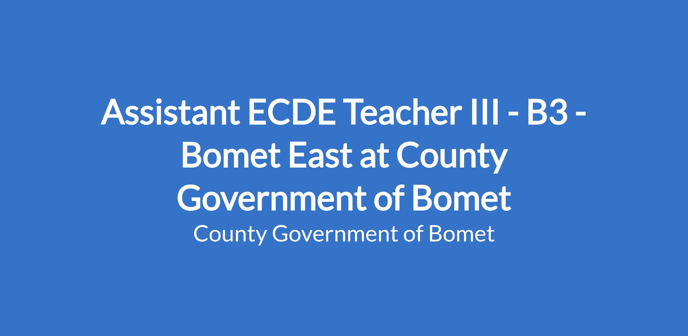 Assistant ECDE Teacher III - B3 - Bomet East at County Government of Bomet